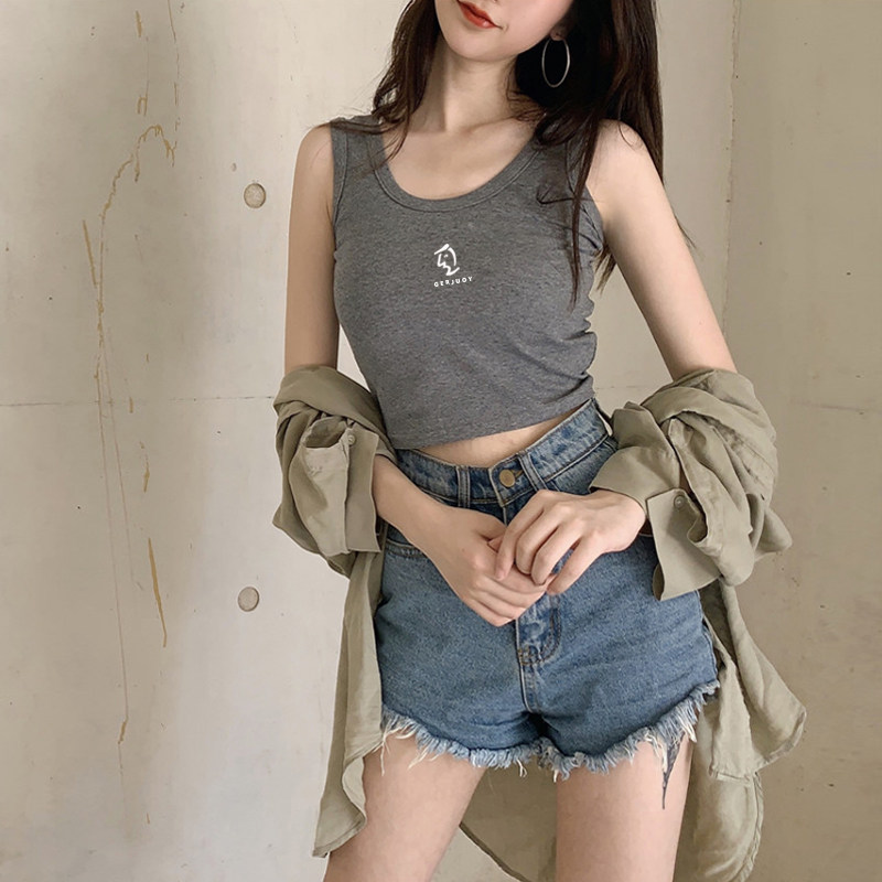 New character Joey sports vest women with inner base short cotton suspenders wearing open navel sexy sleeveless T-shirt