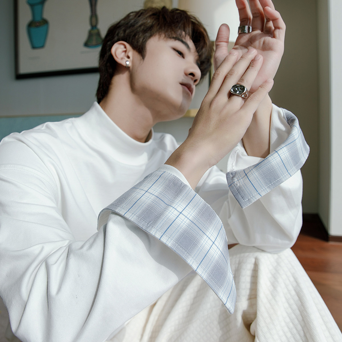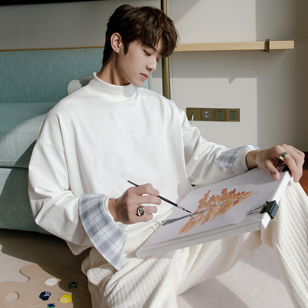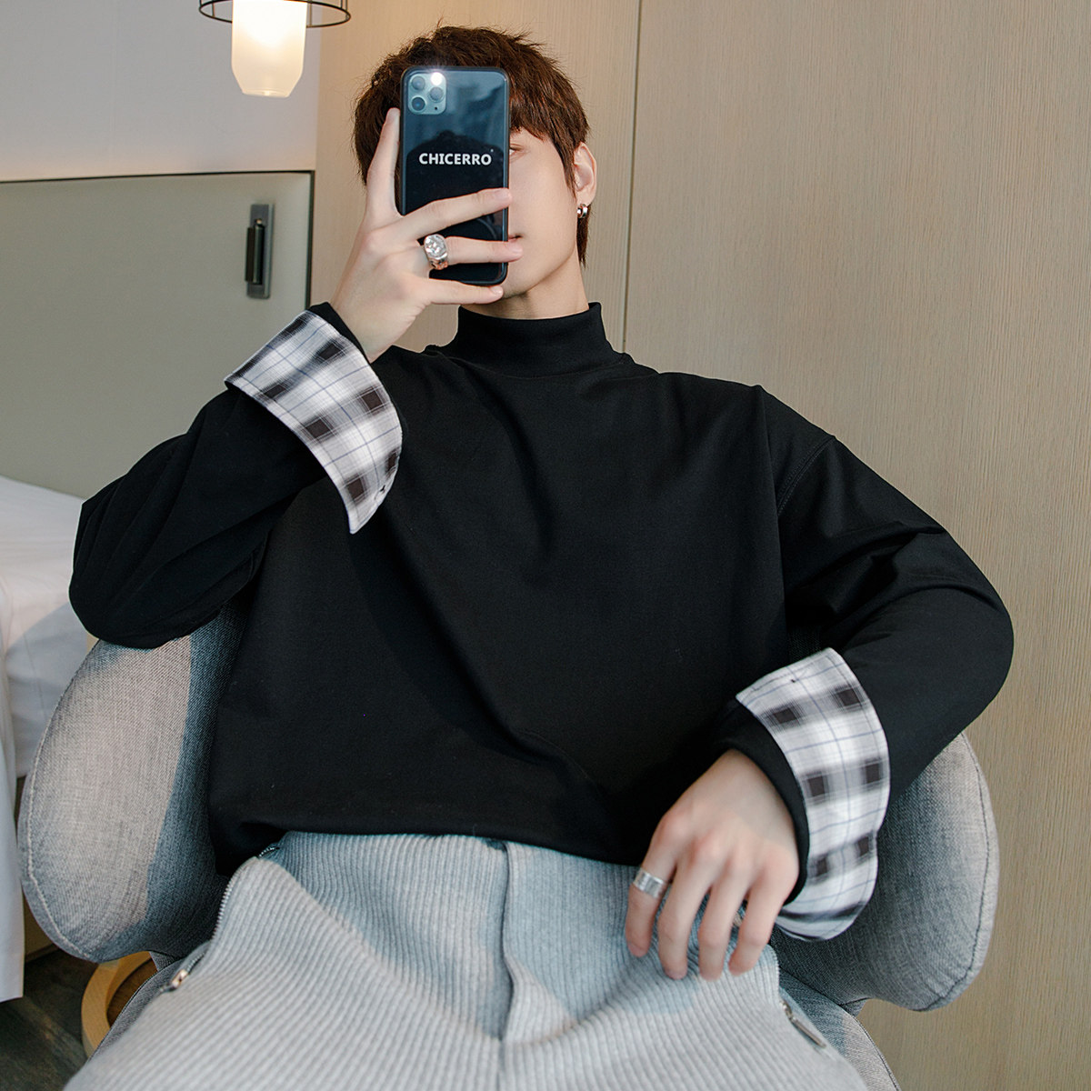 CHICERRO Sicilian men's fake two-piece half-high collar niche long-sleeved T-shirt round neck pullover casual bottoming shirt