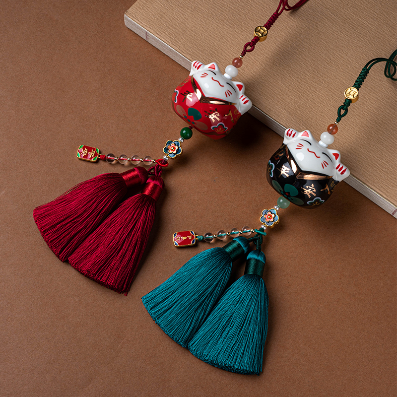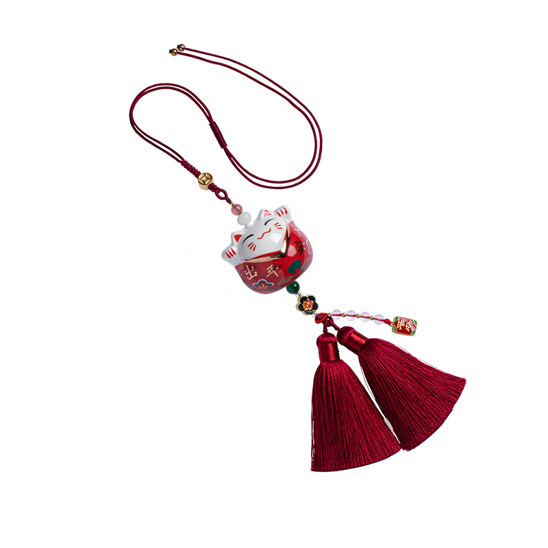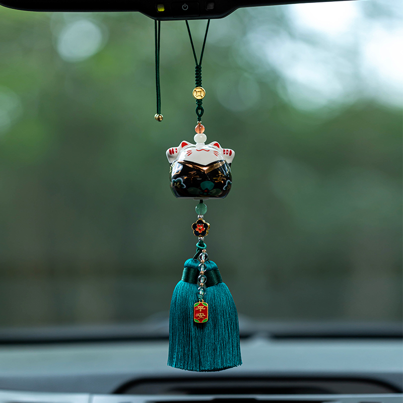 Changyou Car Pendant Trick Cat Rear mirror in car Pendant Accessories Ceramic Handmade car hanging decoration for men and women creative cute