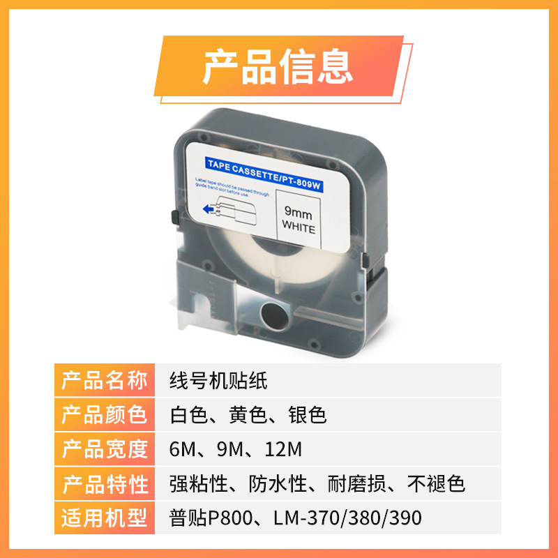 White sticker 6MM PT-806W white sticker 9MM PT-809W white sticker 12MM PT-812W yellow sticker 6MM PT-806