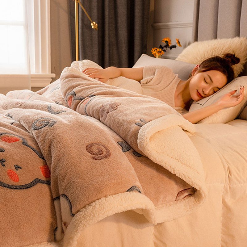 Blanket Quilt Winter Thickened Warm Paving Bed Coral Flannel Blanket Bed Single Blanket Bed With Winter Quarters