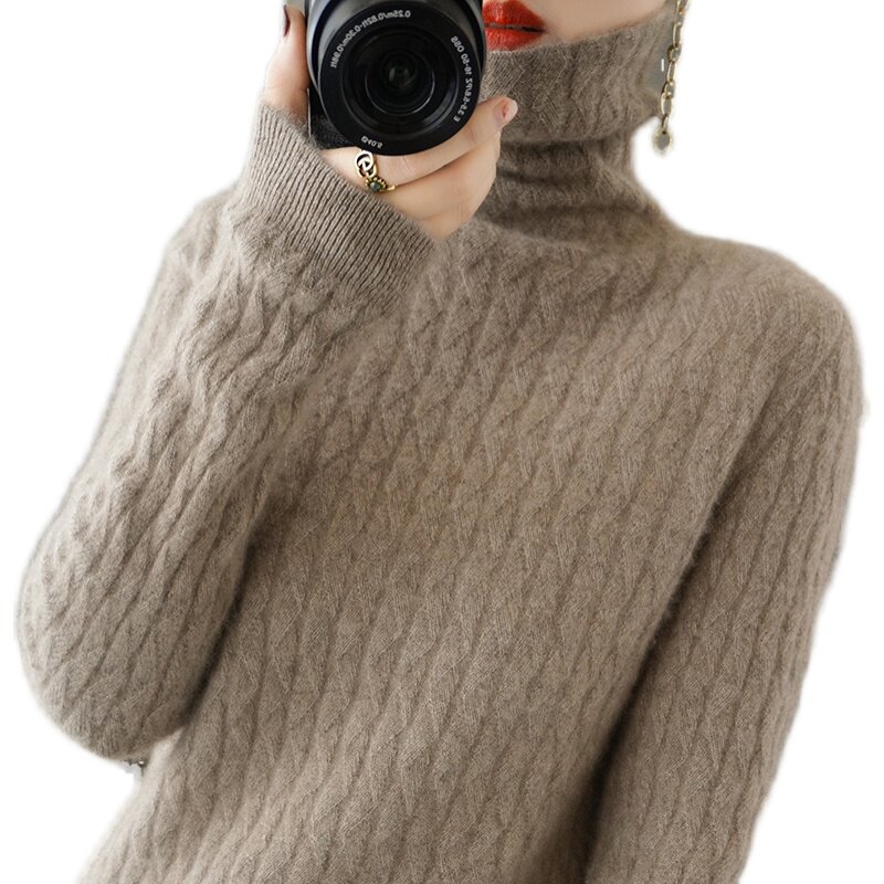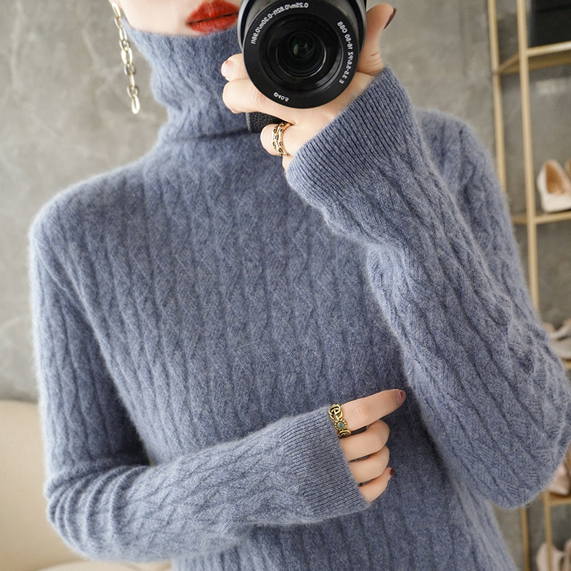 Dituntown 2021 Fall and Winter 2021 new female high - flip collar edition appears to be skinny shoulder sleeve sweater 100 % knit sweater