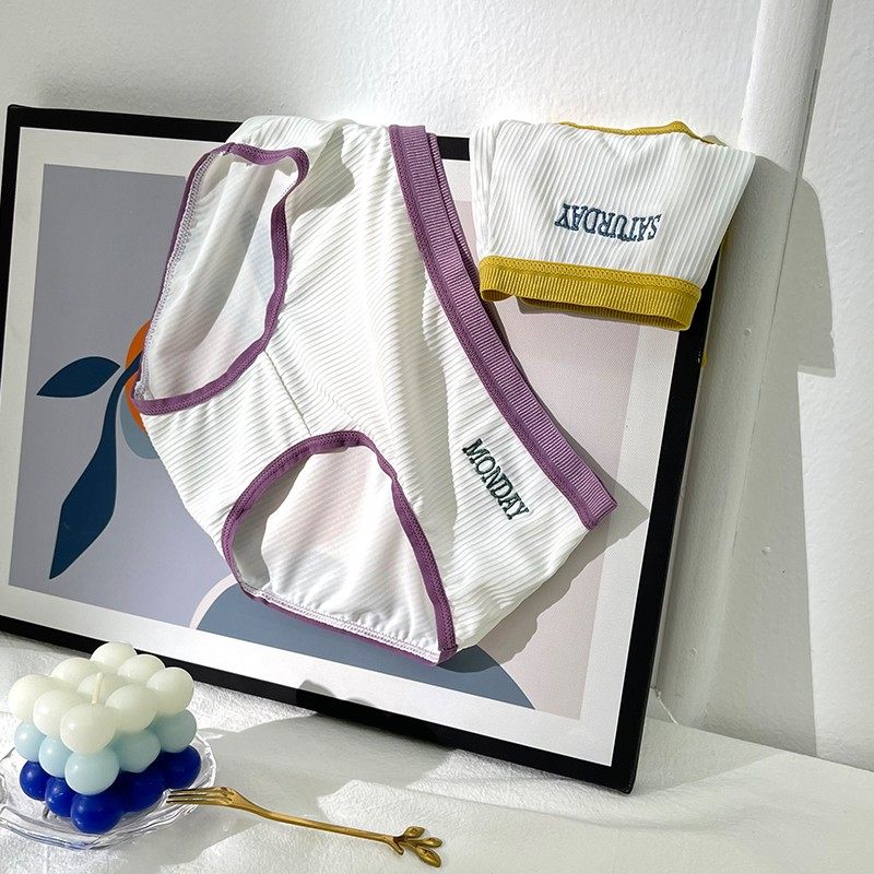 Puff Home Shop~ Simple striped contrasting color pure cotton cotton giant good to wear student English week girl underwear