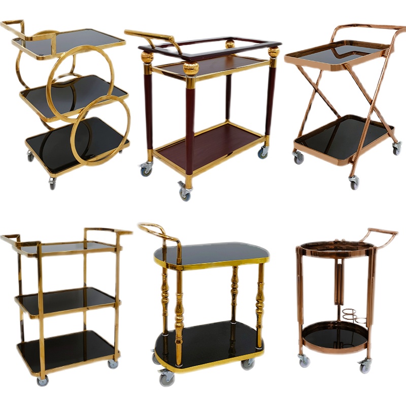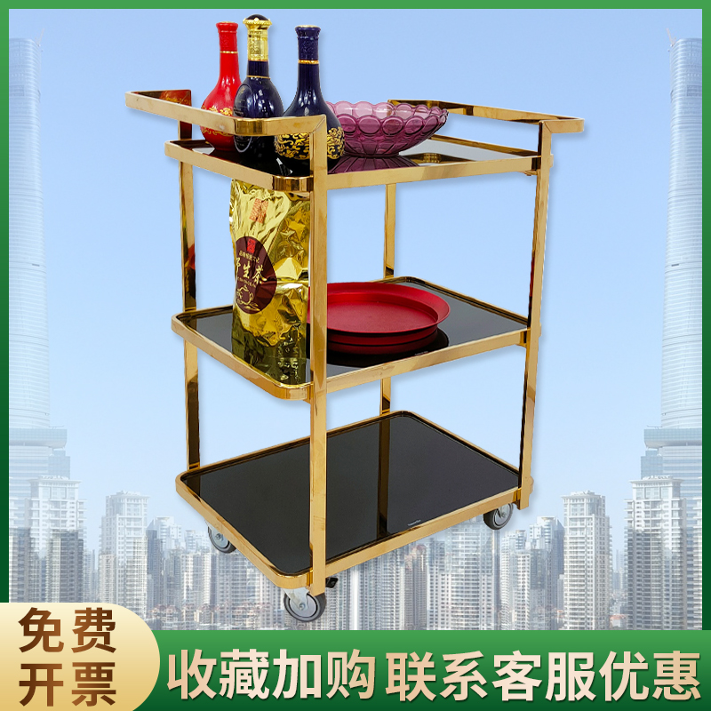 European style stainless steel three-layer wine cart tempered glass fireproof board hotel lobby dessert cake delivery luxury