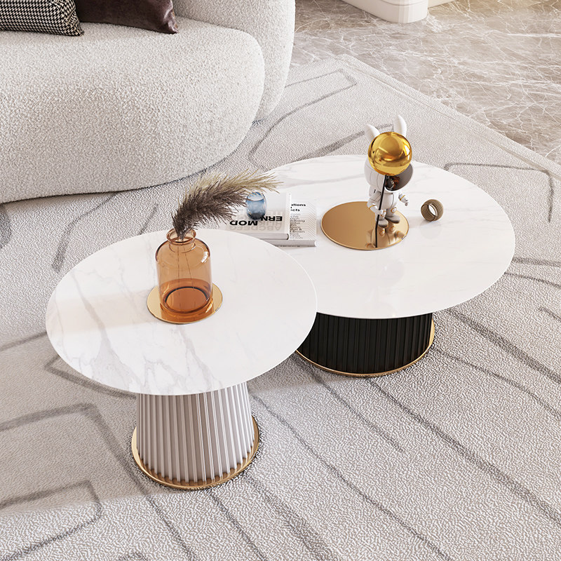 Light luxury rock board coffee table combination small apartment living room home designer creative modern net red round coffee table table