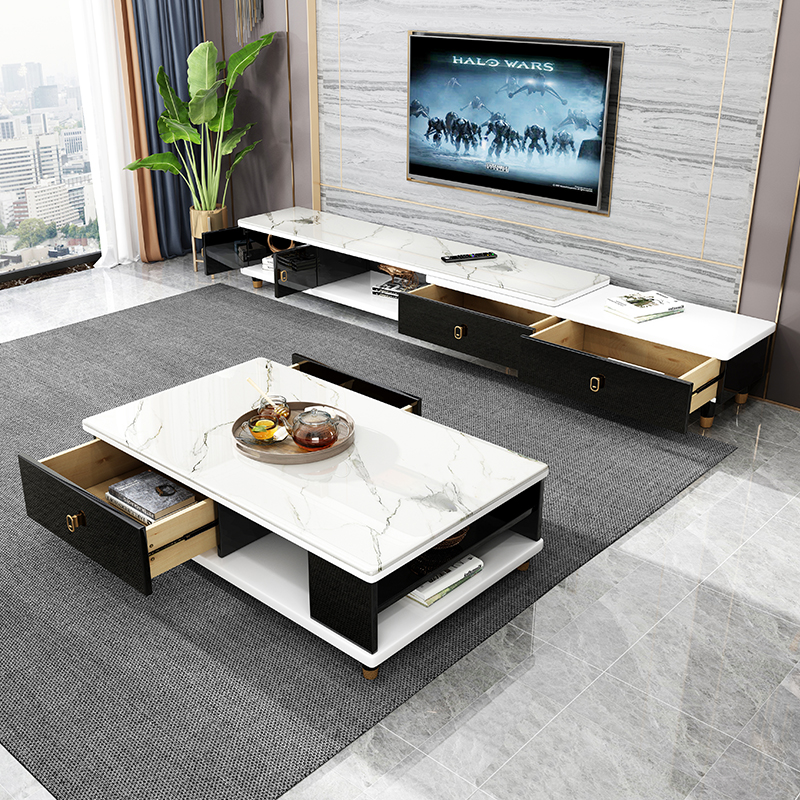 Modern minimalist rock plate tea table TV cabinet Composition Nordic assembly ground cabinet bedroom living room telescopic film and TV cabinet