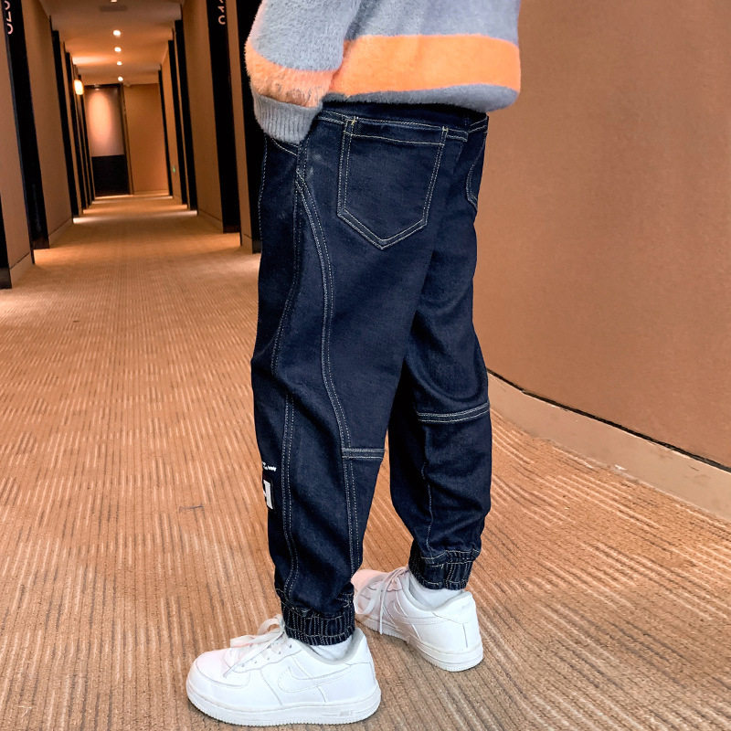 Bala Boys Spring and Autumn Jeans 2022 Big Boys Thickened Trousers Children's Casual Breathable One-piece Fleece Pants