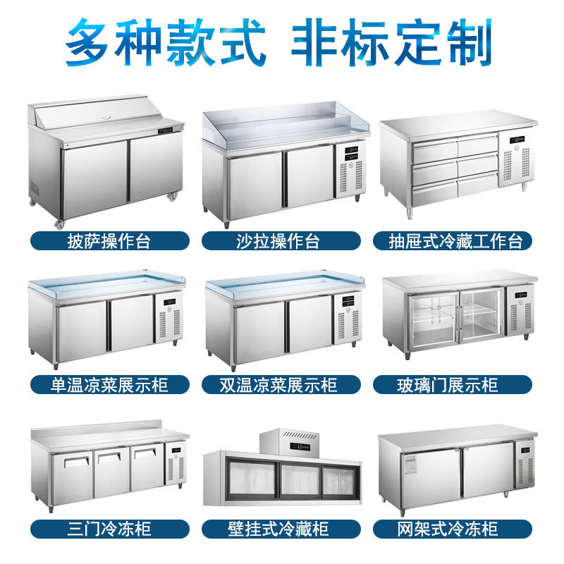 Guangfushun commercial air-cooled refrigerated frozen frost-free pizza table salad table work table cabinet refrigerator seasoning operation table