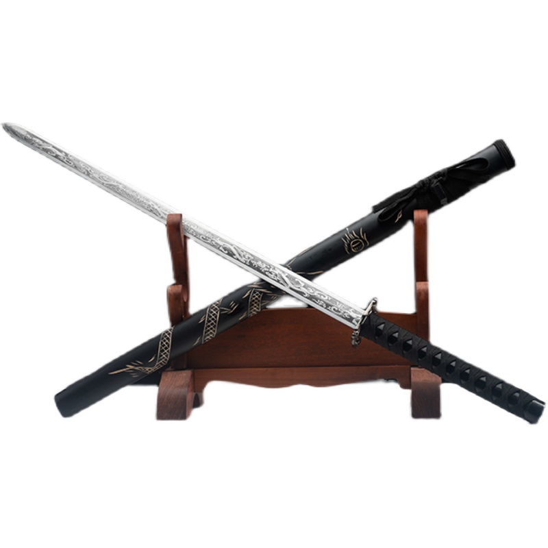 Longquan City Straight Martial Arts Training Knife Sword Legal Han Sword Shadow View Tang Cross Knife Japan Swing Piece Embroidered Spring Knife Unopened Blade