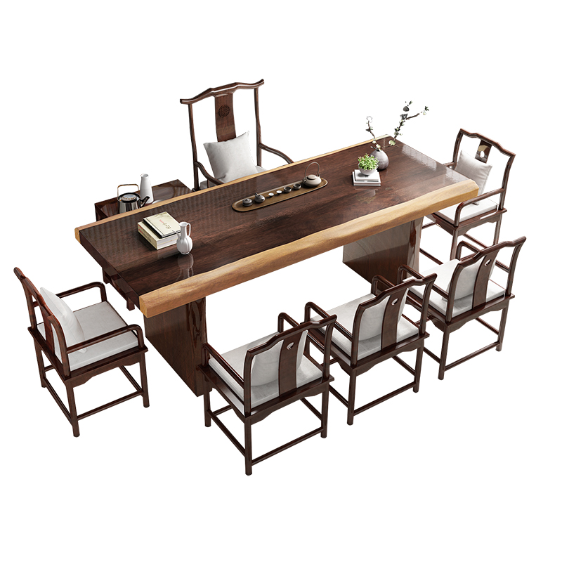 New Chinese-style solid wood tea table large board 1 meter 8 tea table table stool combination Kung Fu coffee table living room log tea table chair