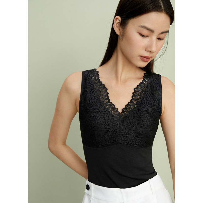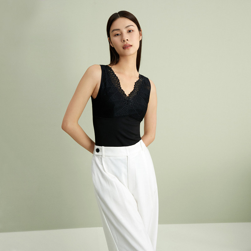 Soundtrack YINERlife21 autumn winter warm vest female V neckline lace BRA style naked vest woman wearing bra without wearing