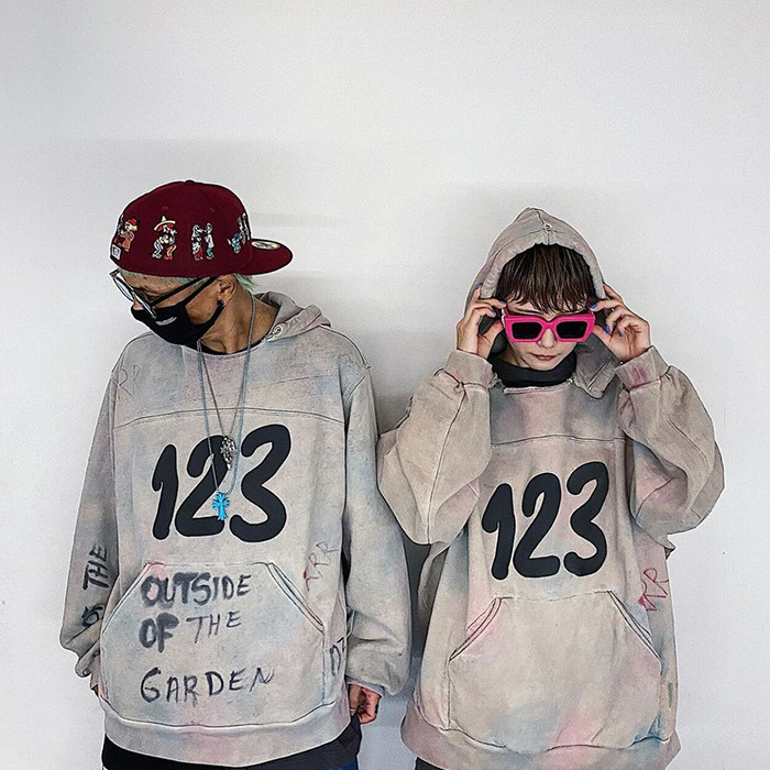 MKSZY RRR123 rendering hand-painted graffiti washed for old letter sets with cap sports shirt male and female tide 600 gr