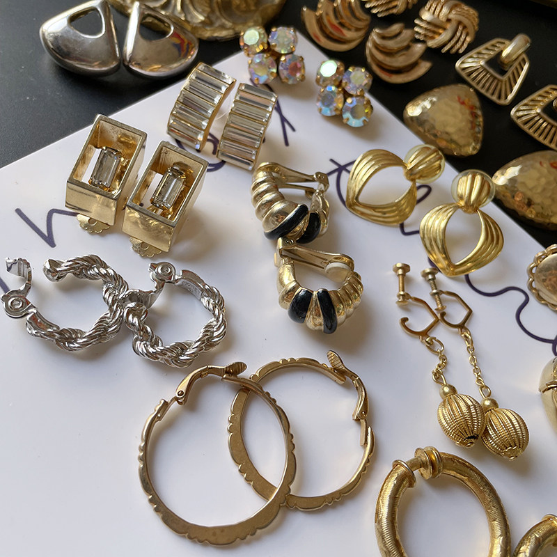 Western antique vintage earrings with fine medium antique pigment ring in Europe and America in Middle Old ear button B9