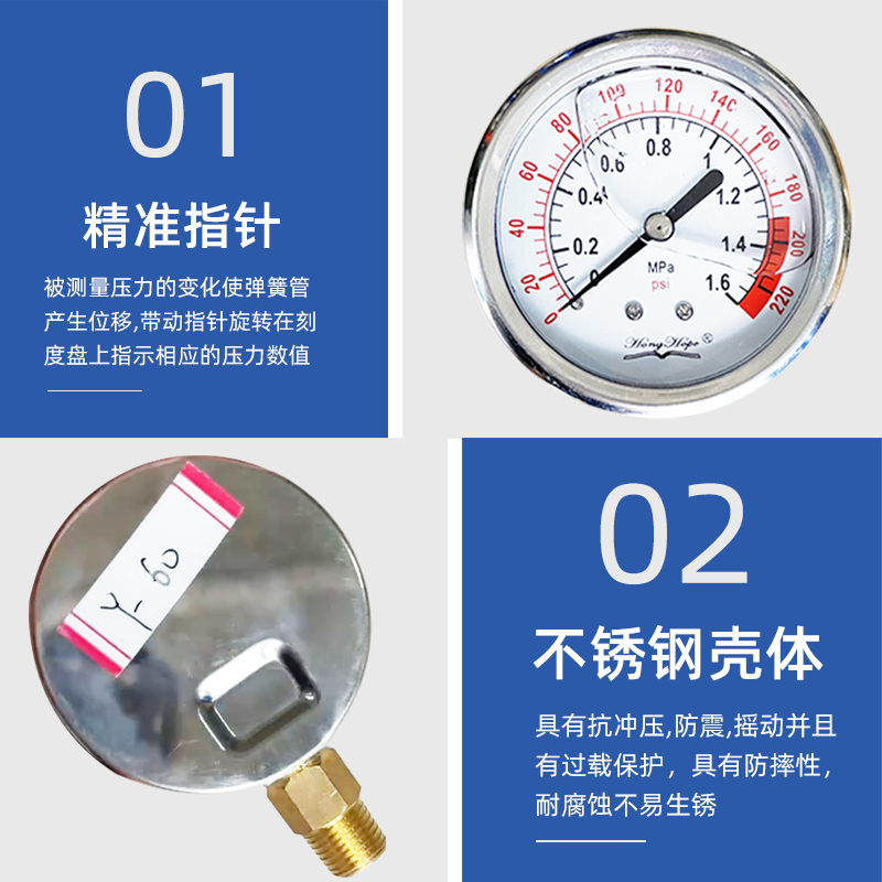Nanjing screw air compressor buffer gas storage tank pressure gauge Y-60 axial pressure 0-1 6MPa