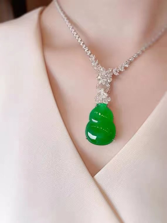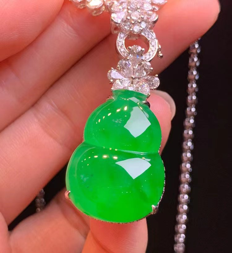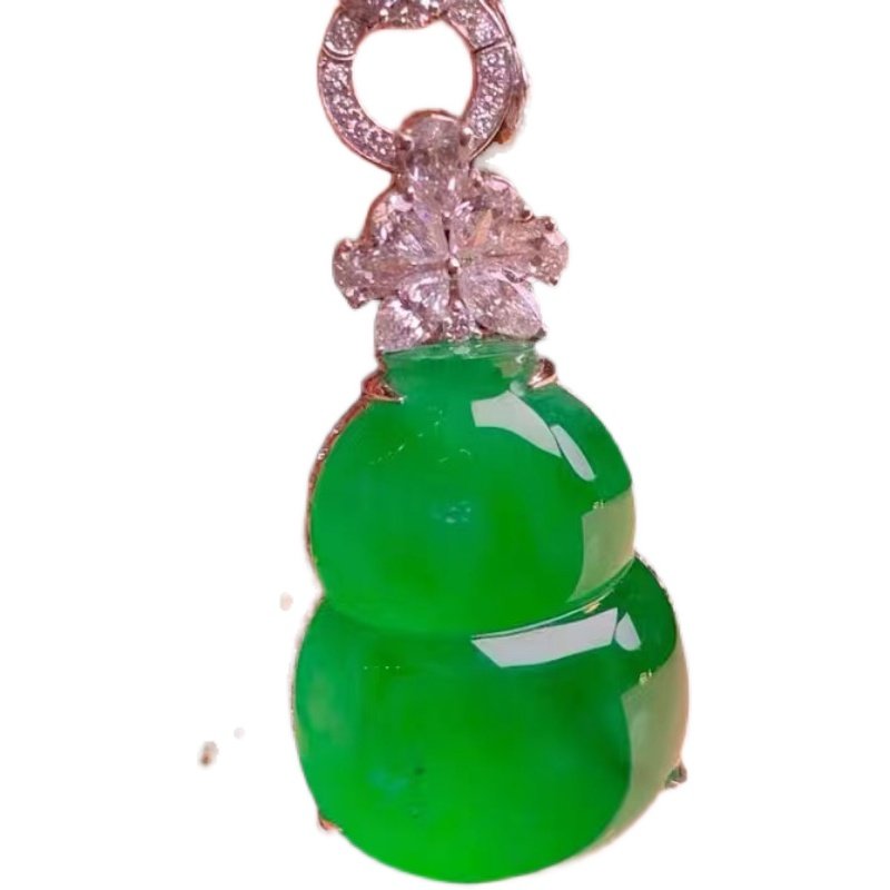 Natural Burmese ice jadeite gourd bean pendant old pit a goods Manyang green Guanyin Buddha jade pendant gold inlay