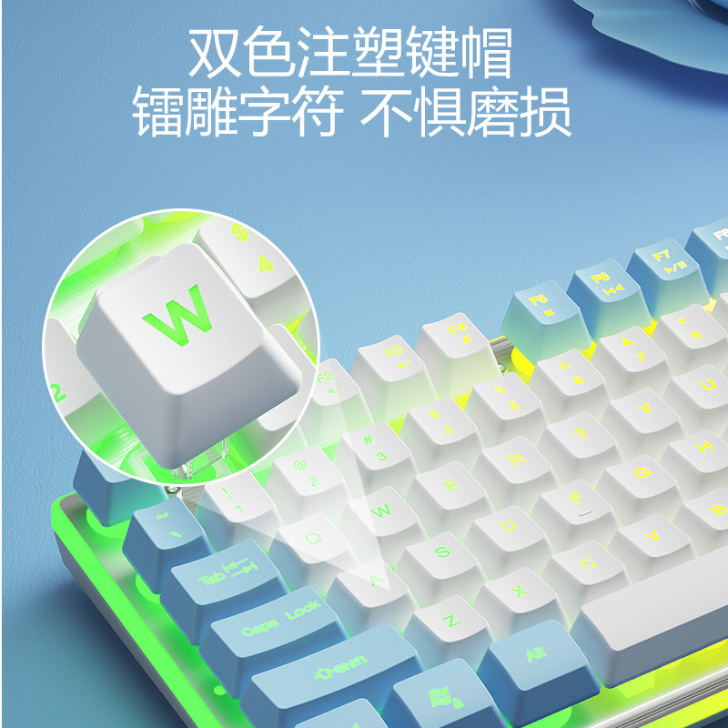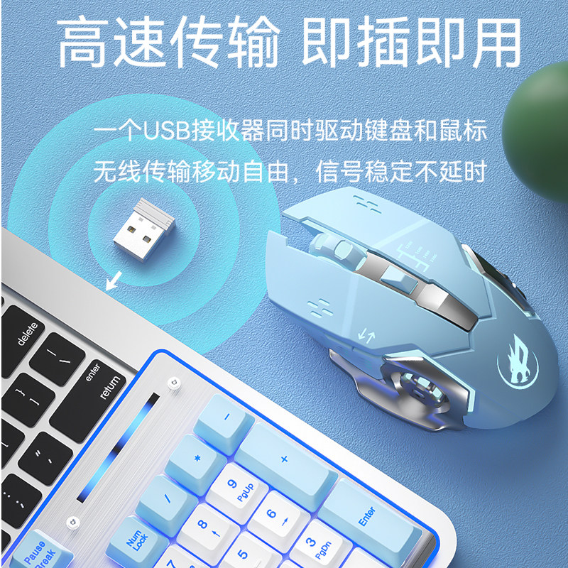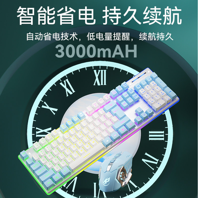 Blue White (Charged-Seven Colourful) Wireless Keyboard Slimy Sets White Blue (Charge Money-Seven Color Luminous) Wireless Keyboard Slimy Set Blue White (Charge Money-White Light) Wireless Keyboard Sliding Rat Set Group