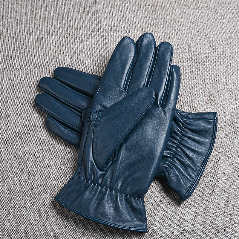 Sheepskin plus wool leather gloves dark blue riding outdoor cold-proof wind-proof snow warm winter flying men's gloves