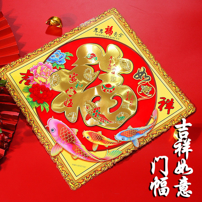 2022 Year of the Tiger three-dimensional blessing character door stickers New Year's new home decoration supplies Spring Festival New Year's creative wall stickers window grilles