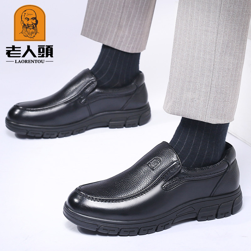 Old man's head leather shoes man 2022 spring and summer genuine leather thick bottom non-slip business casual shoes round head middle aged dad shoes