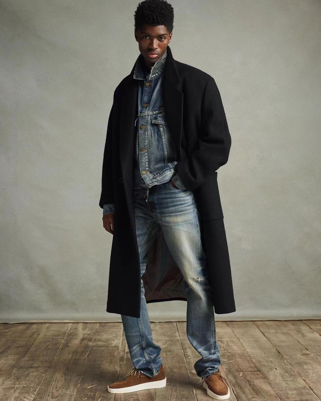 The roaring little eyes Fear of the god 7TH main line FOG washed the hole to break the high street straight drum jeans