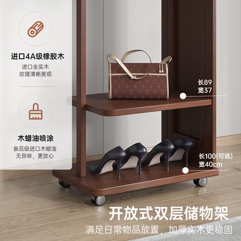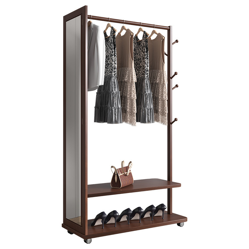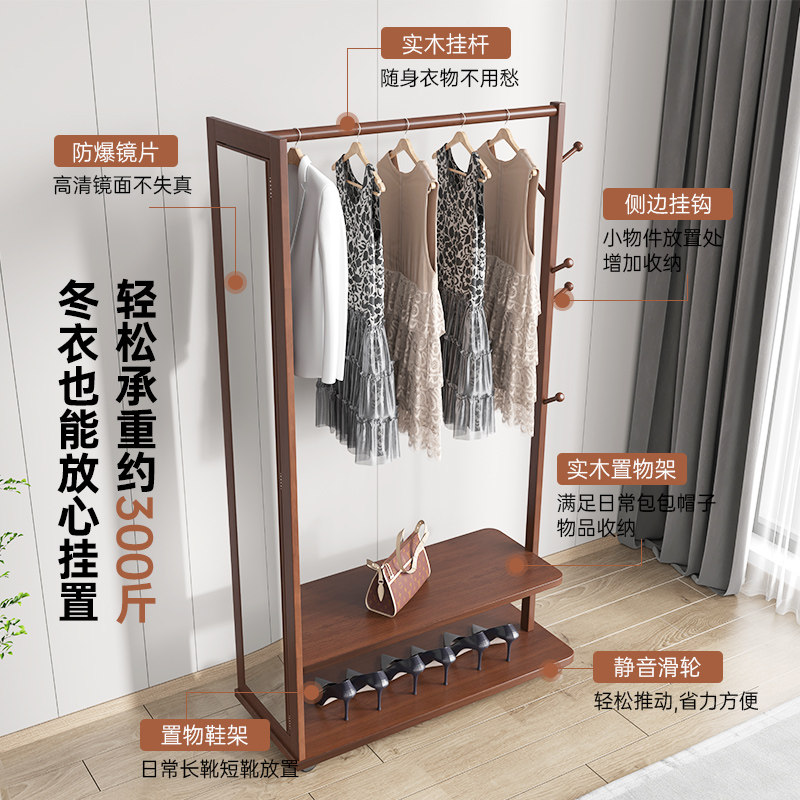 Solid wood clothes hat rack with mirror full body full-body mirror hanger floor bedroom living room home clothes rack hanging hanger