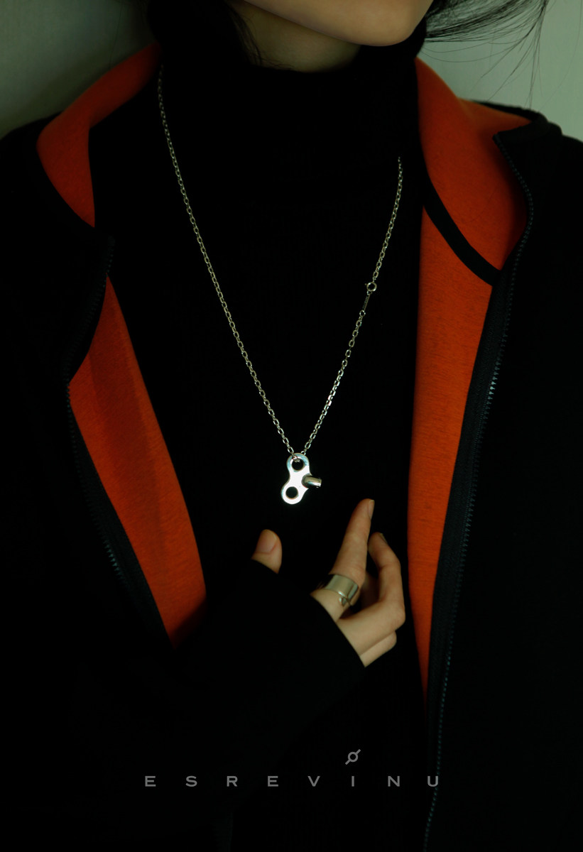 Cosmic Tick "Upper Clockwork" Silver Necklace Original Design S925 Silver Long Chain Lovers Neutral