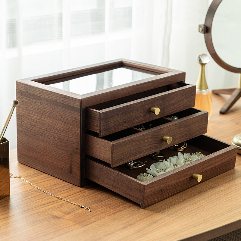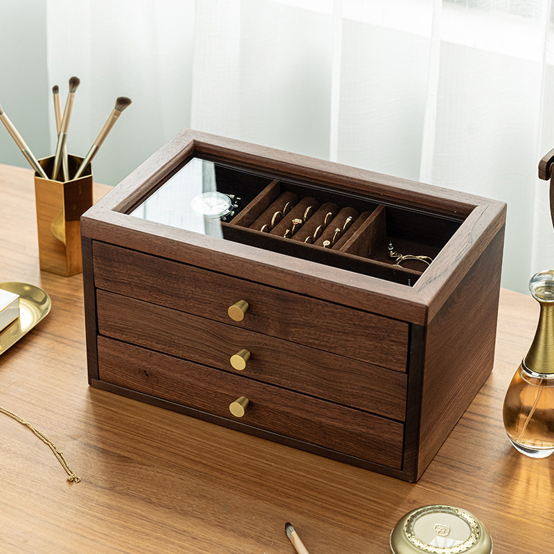 Jewelry box storage box solid wood teacher's day female teacher gift jewelry box walnut jewelry box drawer large capacity