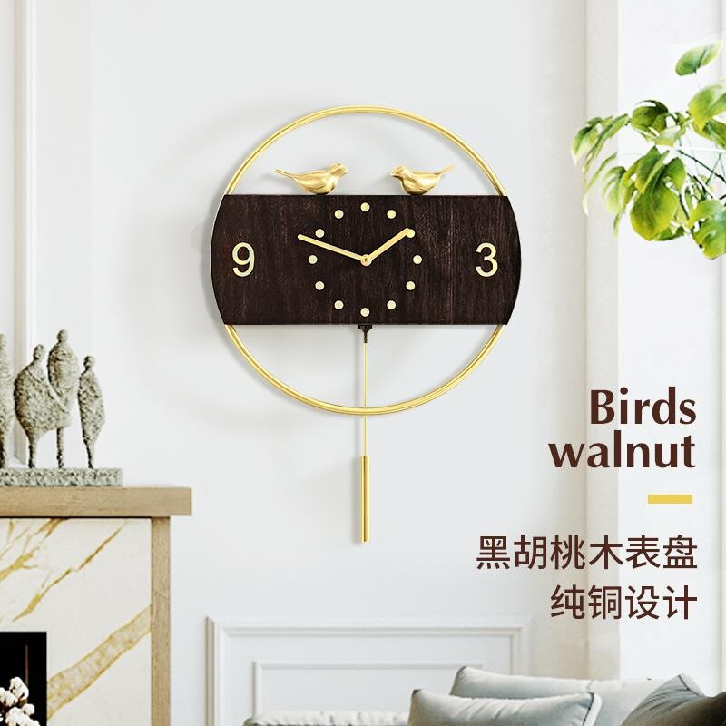 High end New Chinese pure copper hanging bell Living room hanging wall Light Extravagant Walnut Wood China Wind Pendulum Clock Performance Décor