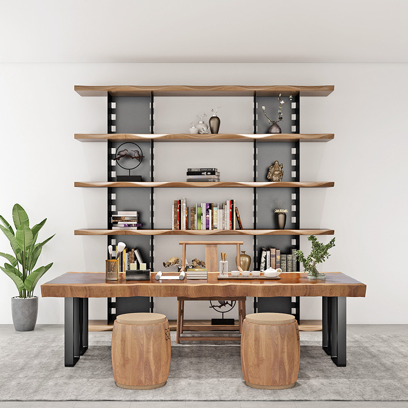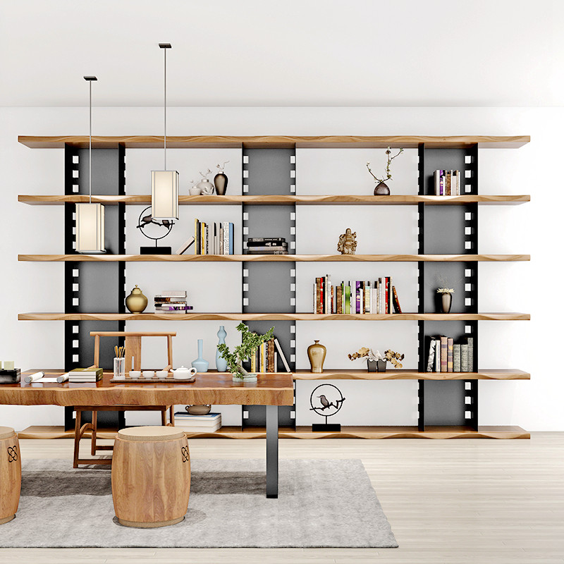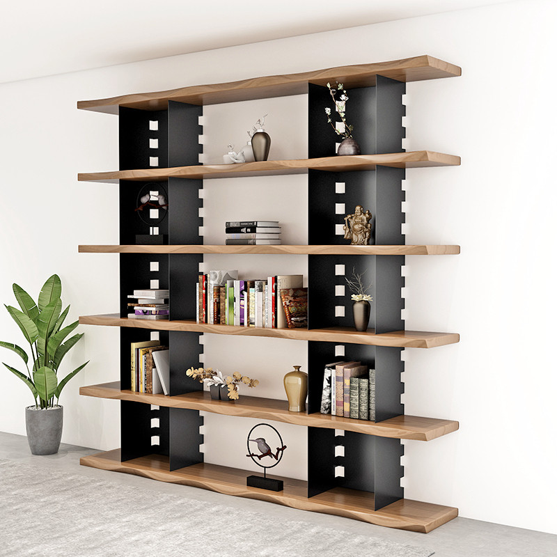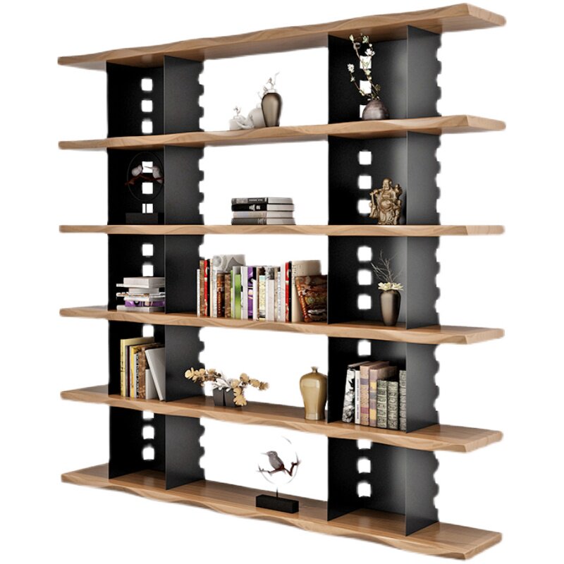Nordic solid wood bookshelf full wall industrial style bookcase multi-layer wrought iron living room office study display rack storage rack