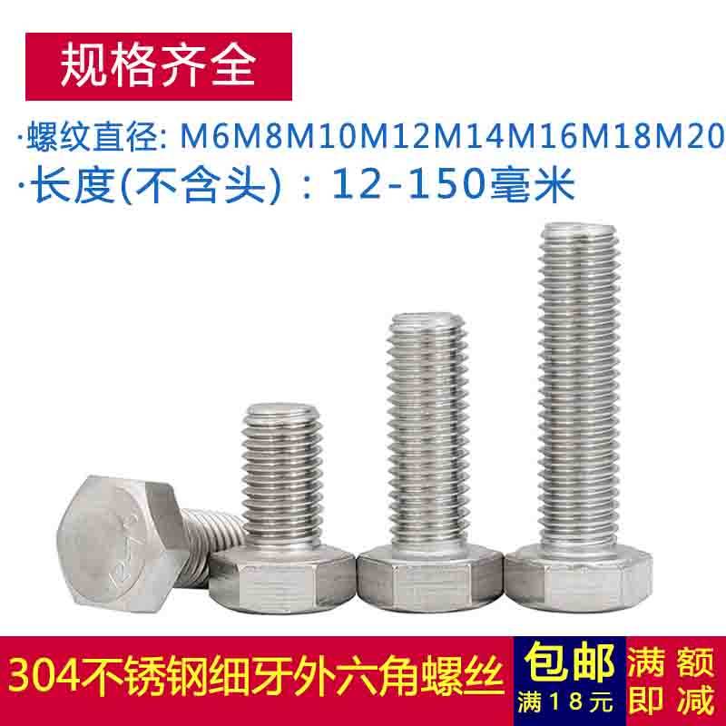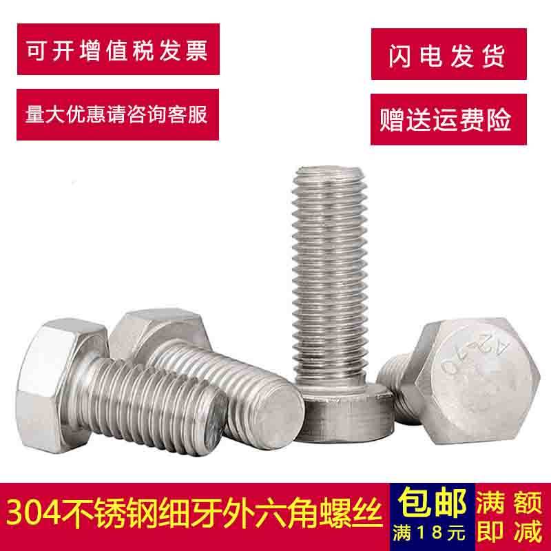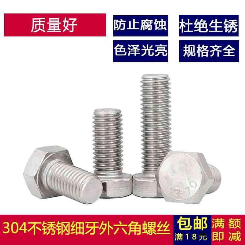 M12*1 M14*1M16*1 Stainless steel fine teeth outer hexagonal screws, outer hexagonal bolts 304 stainless steel