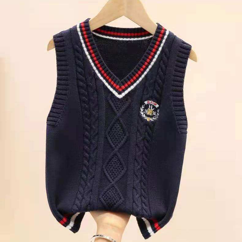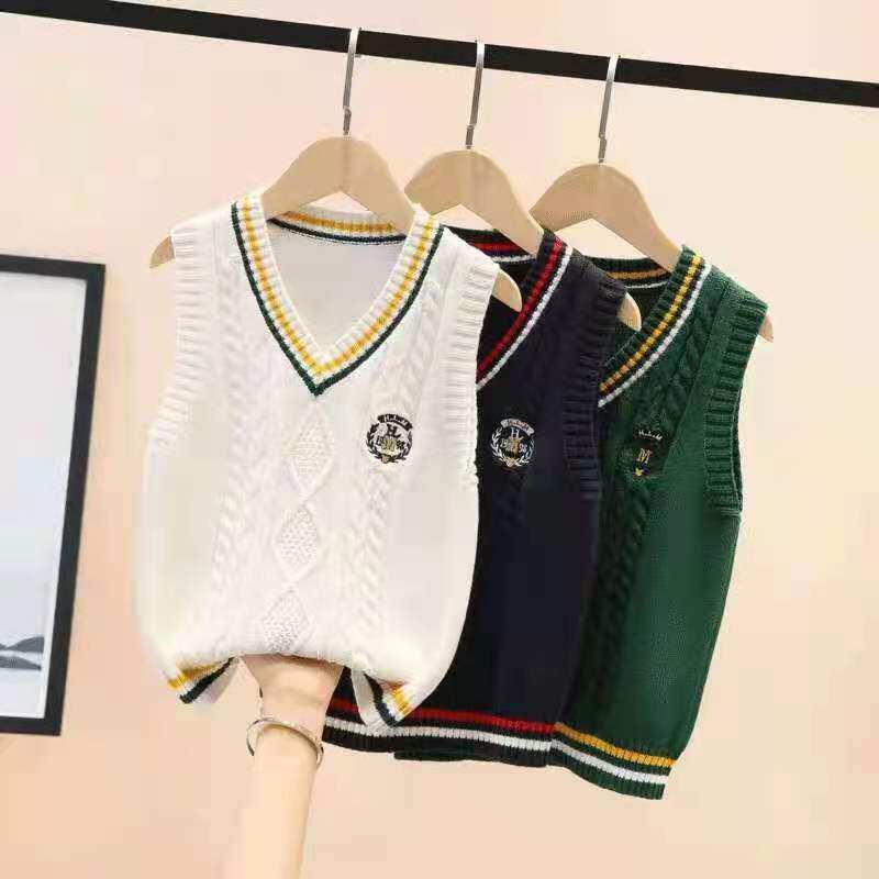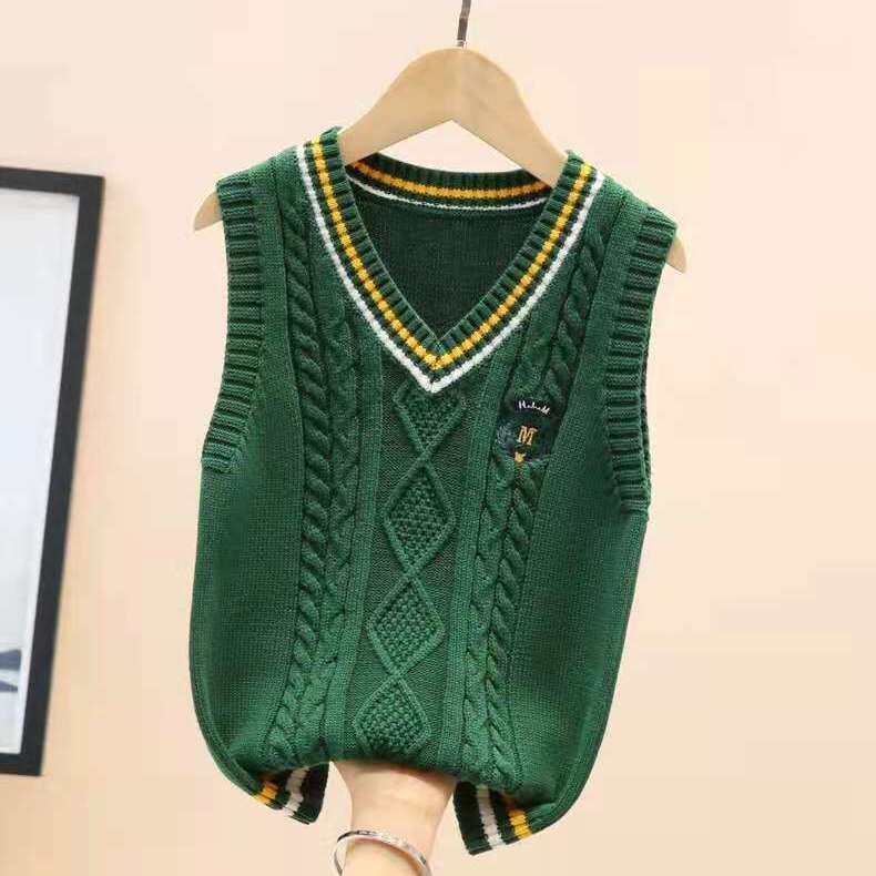 Barabara Children's waistcoat waistcoat Spring and autumn thin boy's vest sweater outside wearing pure cotton big boy girl's knitted sweatshirt new