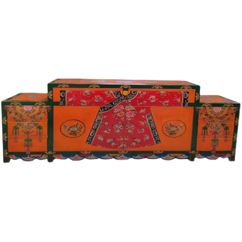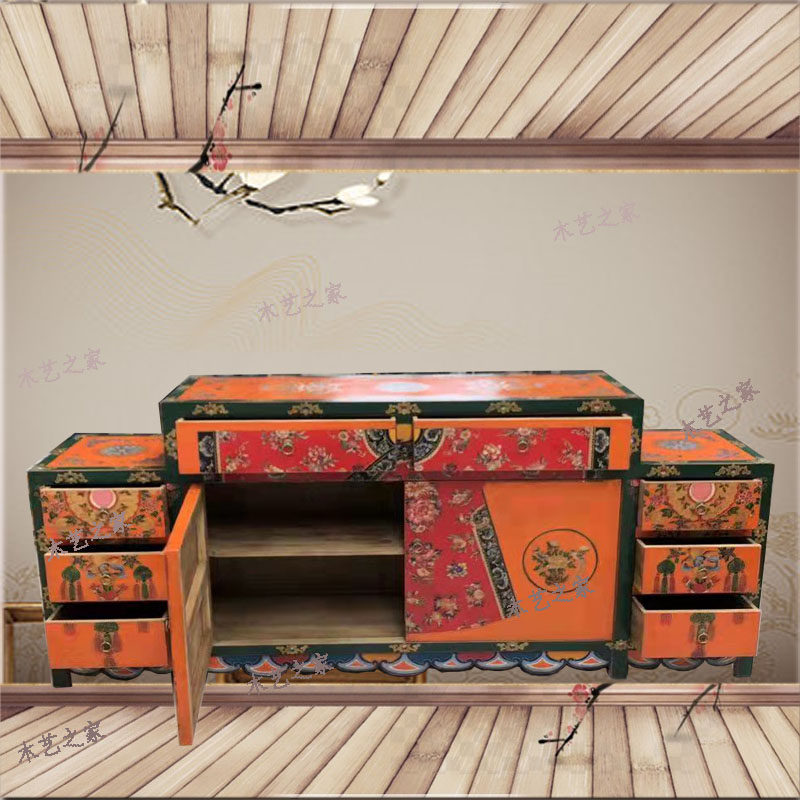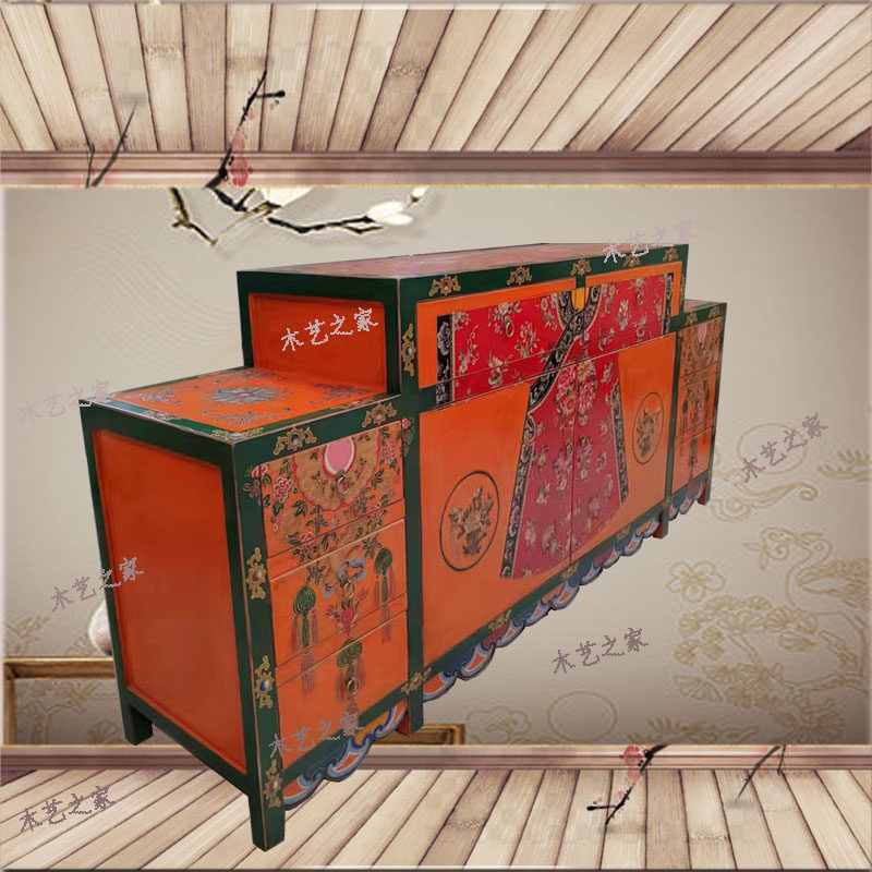 Internet celebrity new Chinese style retro pine solid wood painted old furniture cabinet custom porch cabinet floor dressing table
