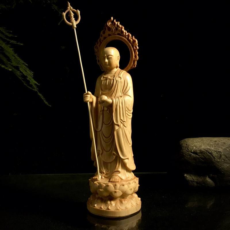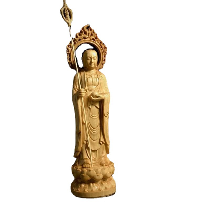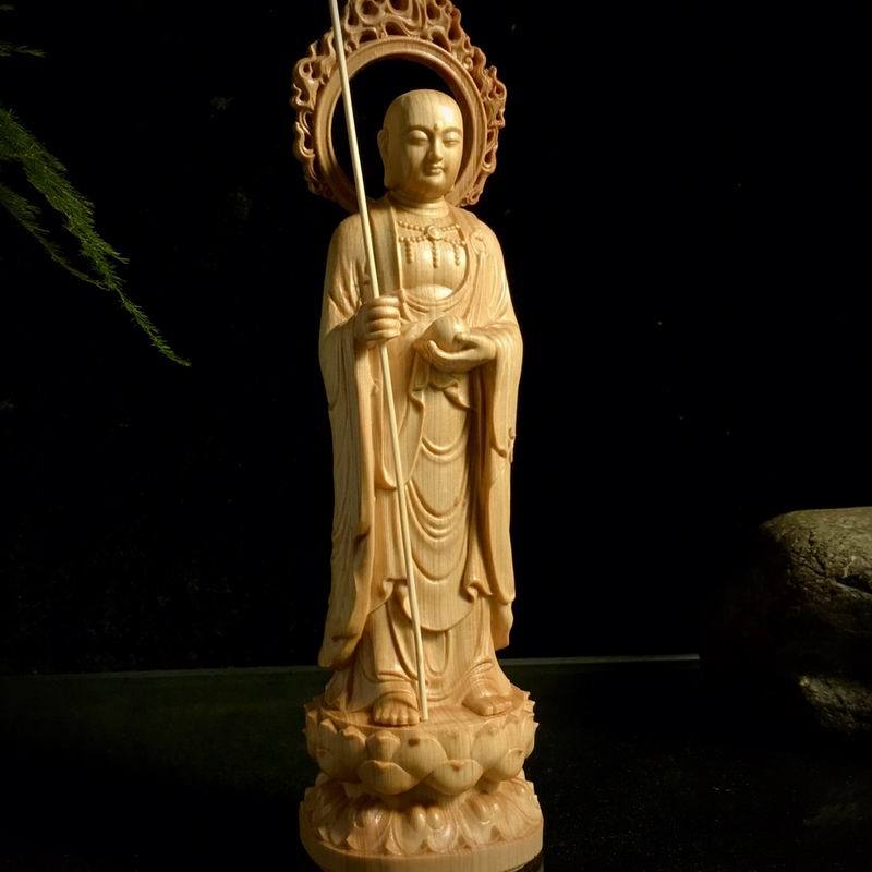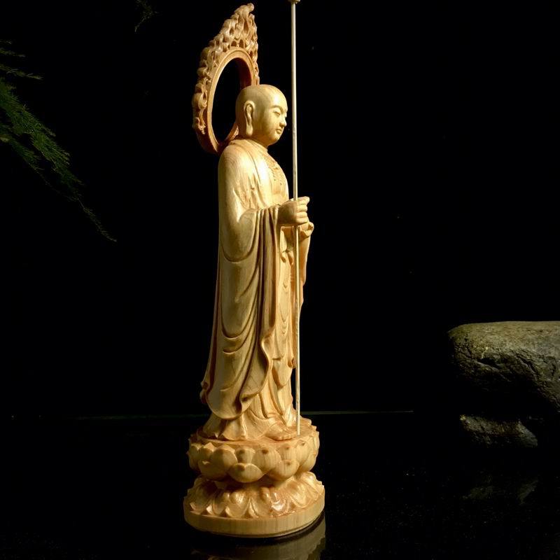 Thuja backlit Ksitigarbha Bodhisattva wood carving Buddha statue
