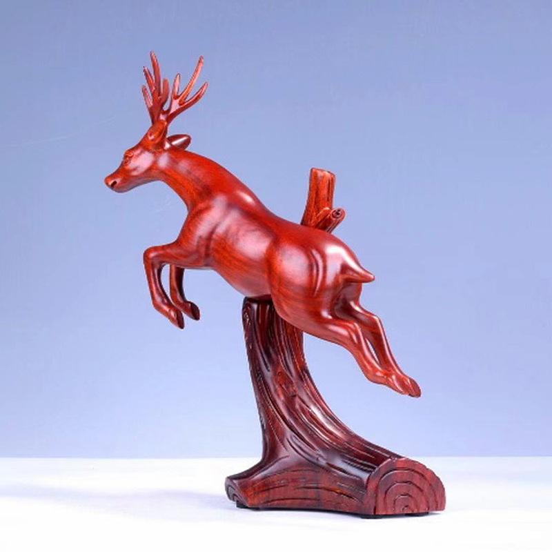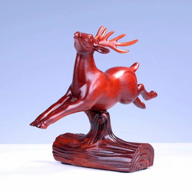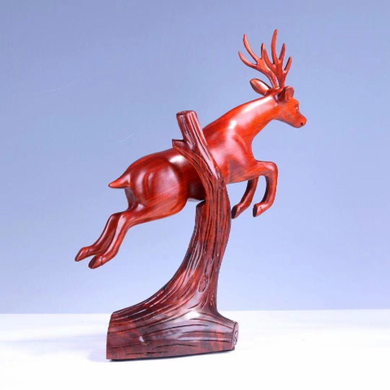 Iron plow wood male and female double deer animal statue red solid wood sika deer Fulu double exquisite desktop decoration ornaments