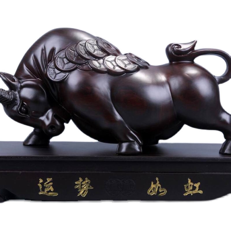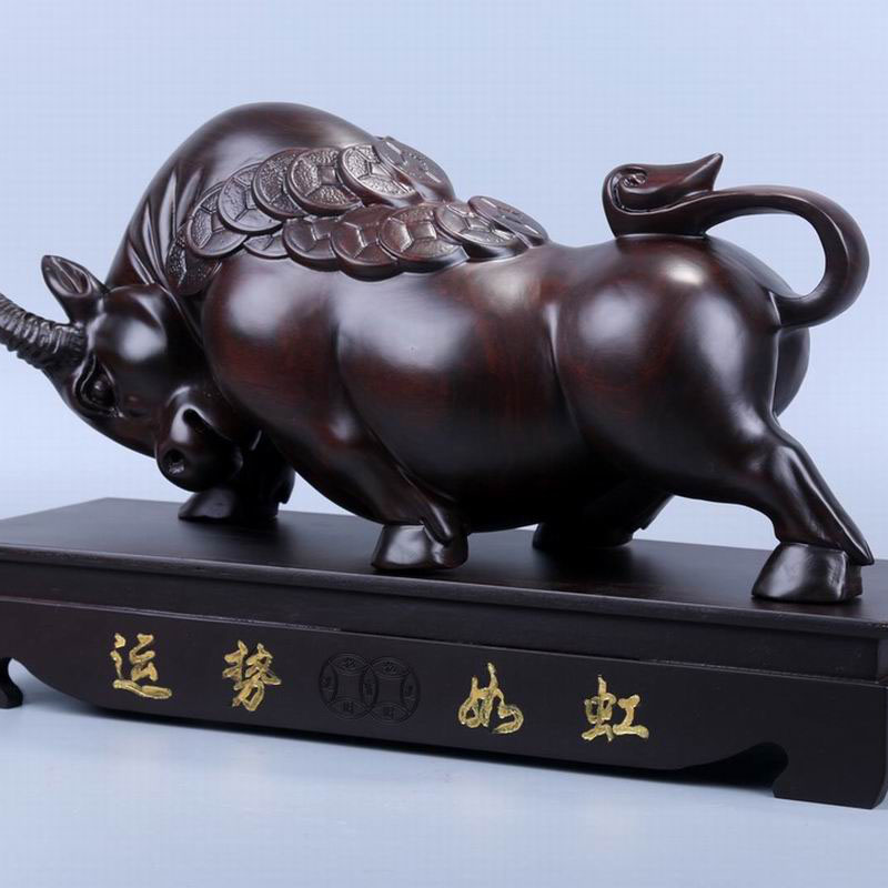 African ebony wood Ox year fortune is like a rainbow wood carving round carving Ming and Qing characters desktop ornaments gift-giving leaders