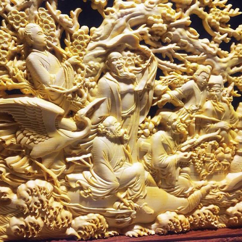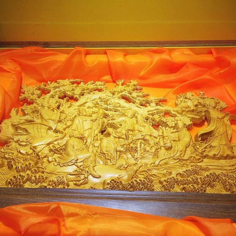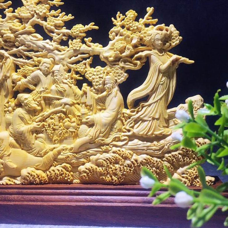 Boxwood Carving Eight Immortals Crossing the Sea Hollow Fine Carving Ornament Desk Living Room Home Antique Frame Decoration Craft