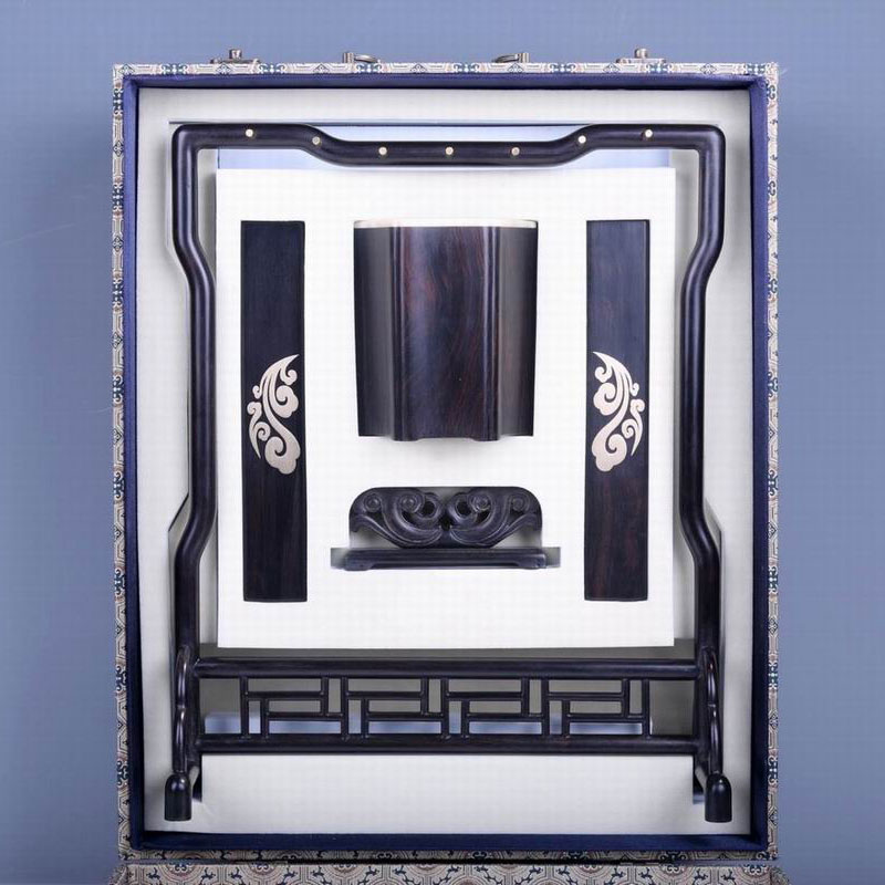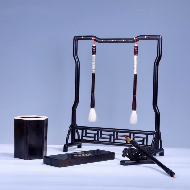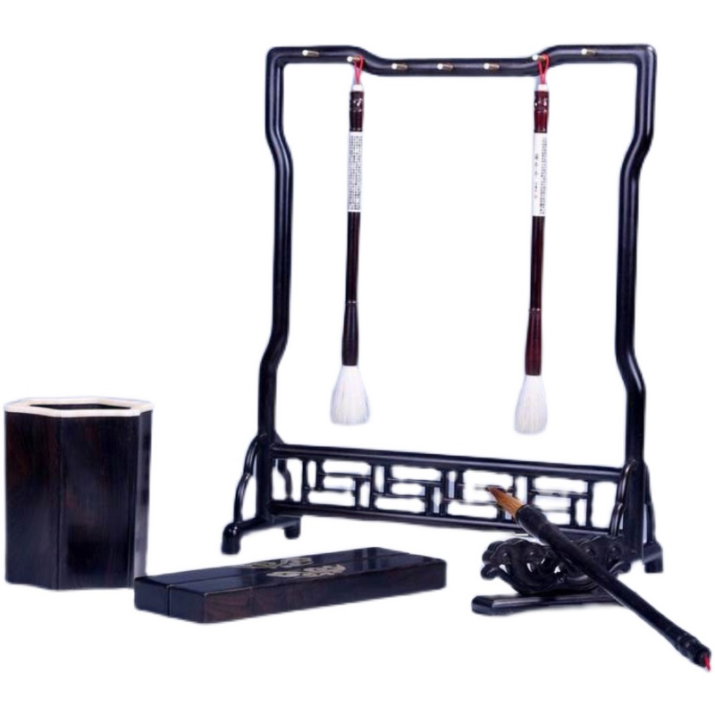 Purple light sandalwood pen holder study four mahogany pen hanging landscape solid wood new Chinese calligraphy ornaments brush hanger