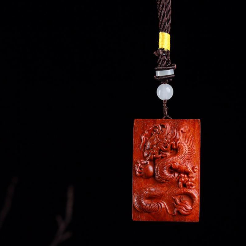Small leaf red sandalwood Longteng four seas pendant necklace 46 brand mahogany lovers play handle car pendant crafts