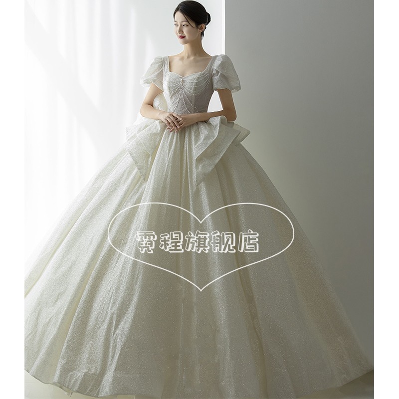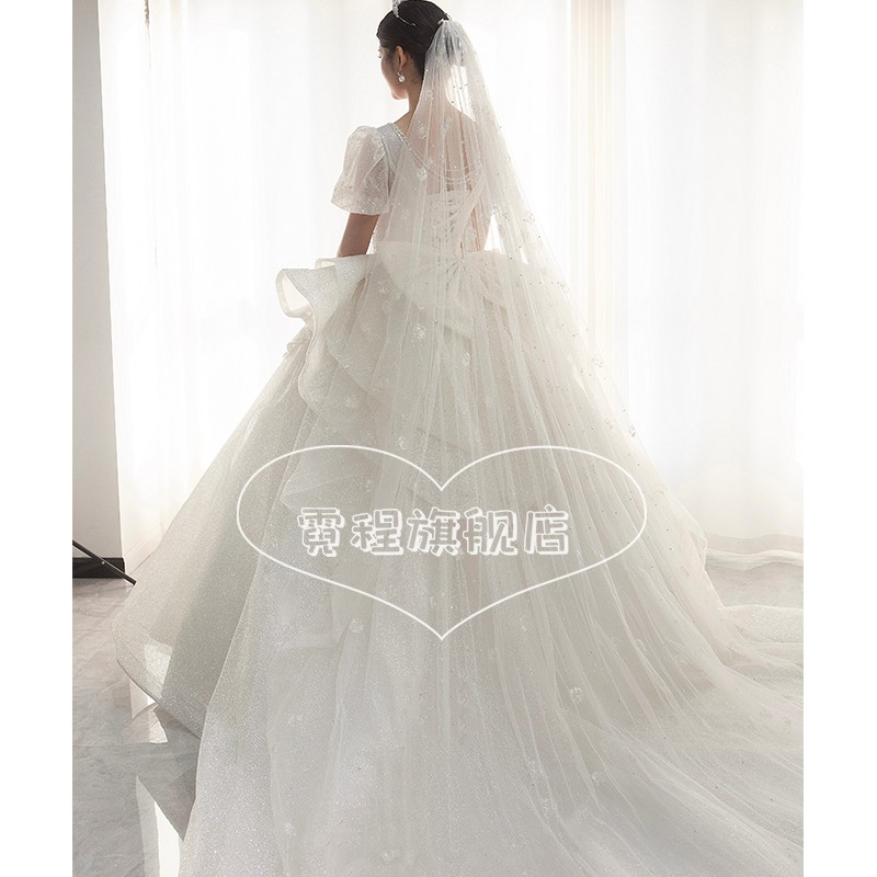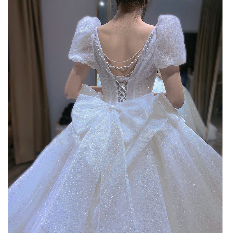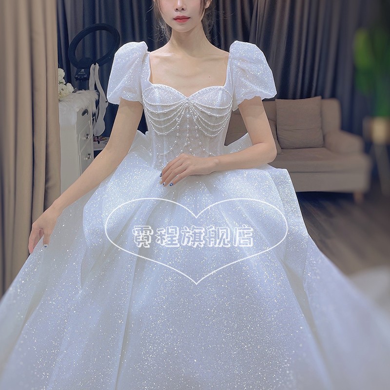 Straight shoulder main wedding dress 202221 new brides big trailing style light out-of-the-door yarn small child starry sky Summer