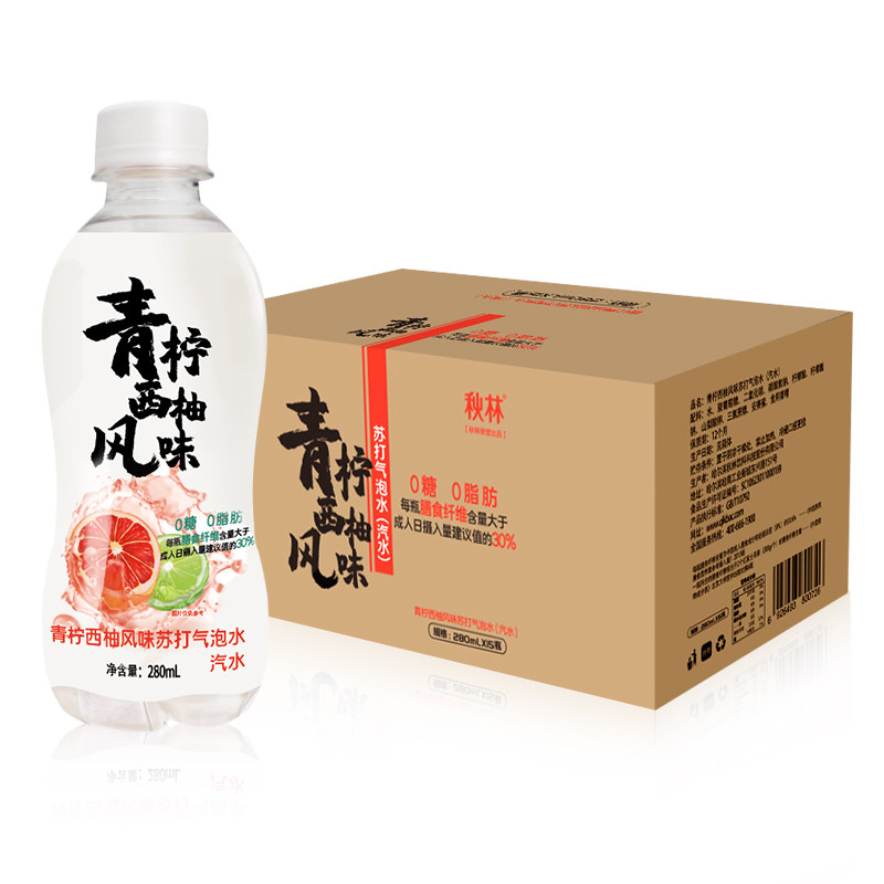 Qiulin Lime Grapefruit Flavored Soda Water Lactic Acid Bacteria Flavored Sparkling Water Drink 0 Sugar 0 Fat 280ml*15 Bottles