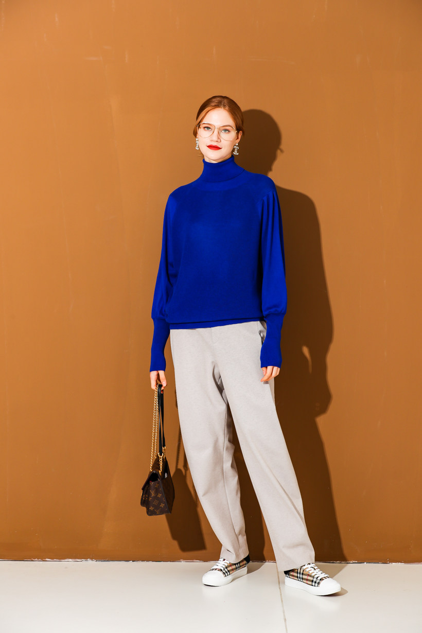 9 large size women's fat MM2021 winter design sense turtleneck knitted woolen sweater 7-color