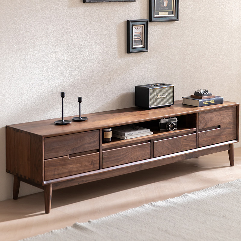 North American Black Walnut Wood Tea Table Composition Nordic Full Solid Wood Furniture Light Lavish Living Room Ground Cabinet New Chinese TV Enclosure