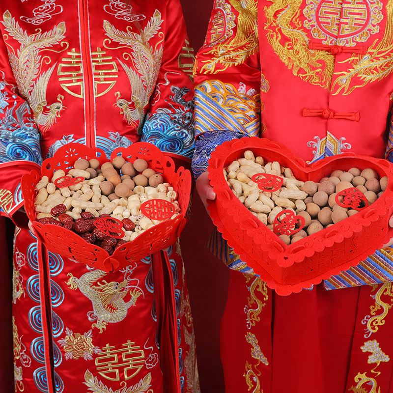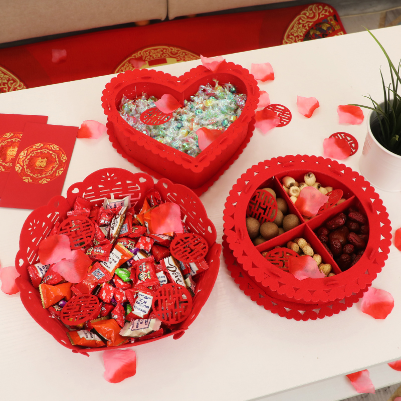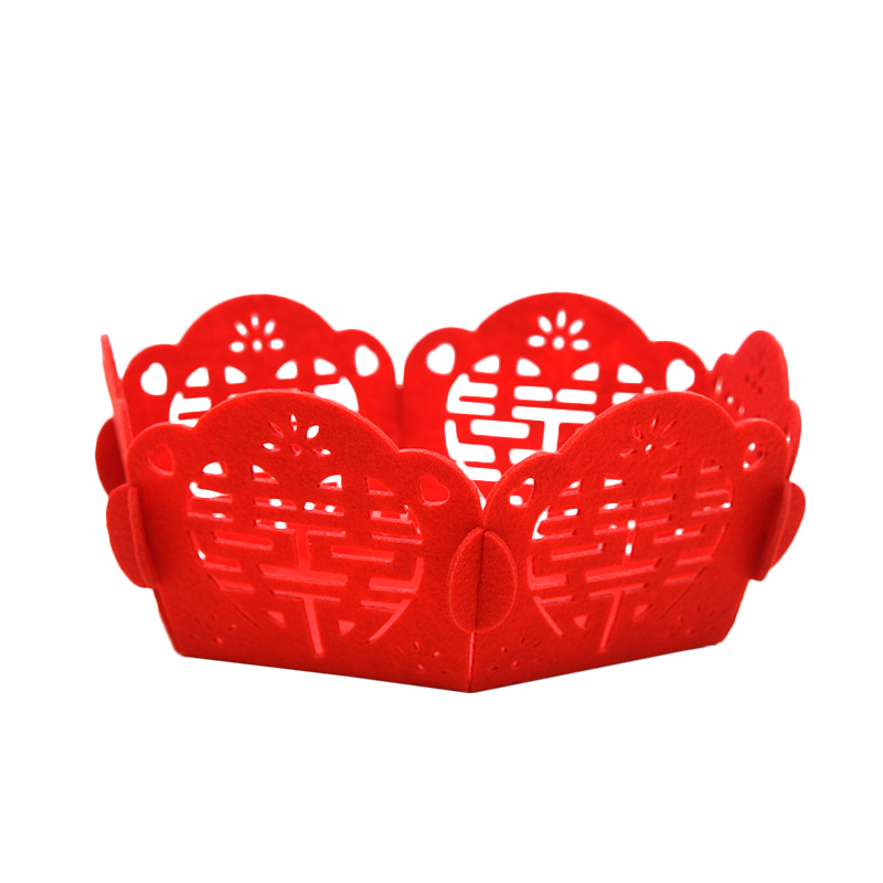 Happy plate non-woven small tray fruit plate plate happy word wedding candy living room red wedding wedding wedding supplies Daquan