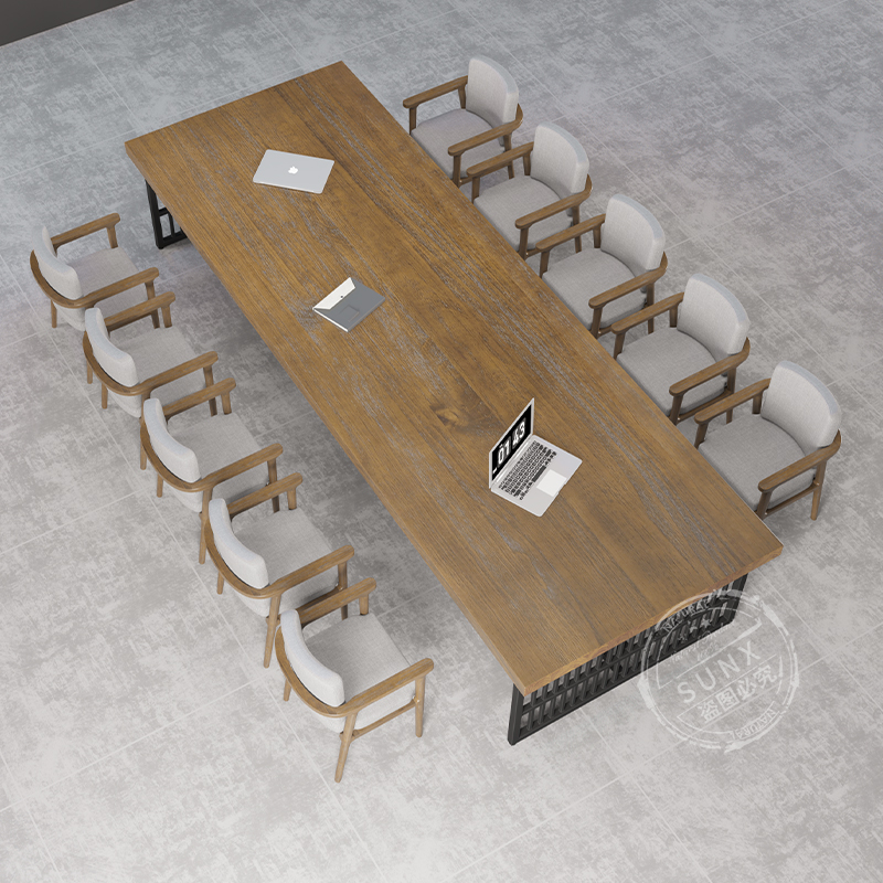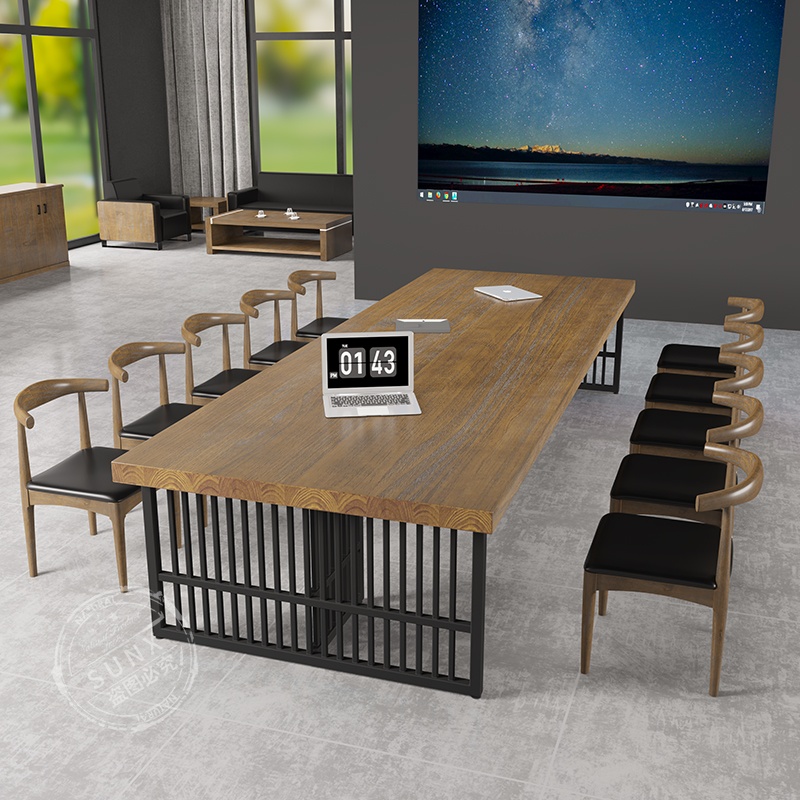 Loft solid wood conference table long table workbench rectangular desk negotiation table and chair combination large long table