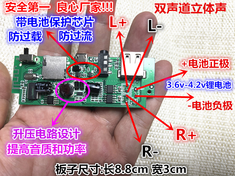 Bluetooth digital power amplifier guillotine kit module SD card AUX 5w 5W 5vUSB charge 3 6 V battery