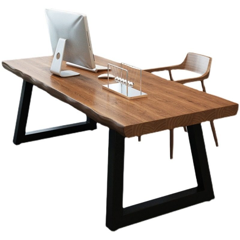 Nordic Solid Wood Computer Desk Brief Home Calligraphy Table Modern Iron Art Book Room Bedroom Strip Table Log Desk