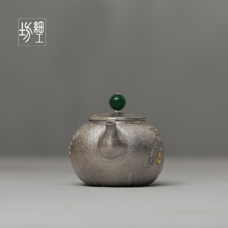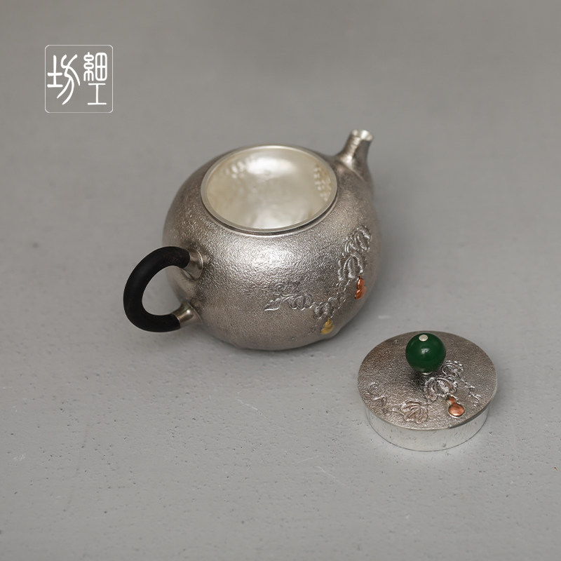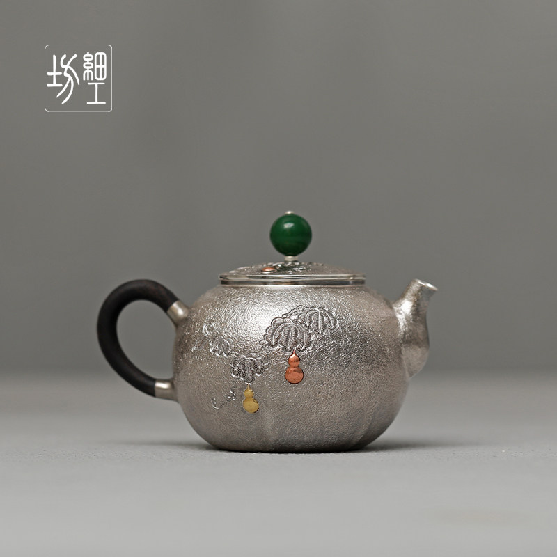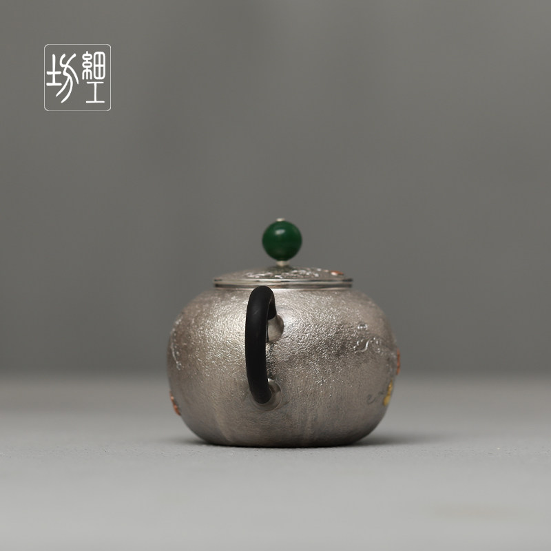 Fine workshop silver pot sterling silver 9999 kettle Japanese pure hand-made one silver pot kettle tea set household