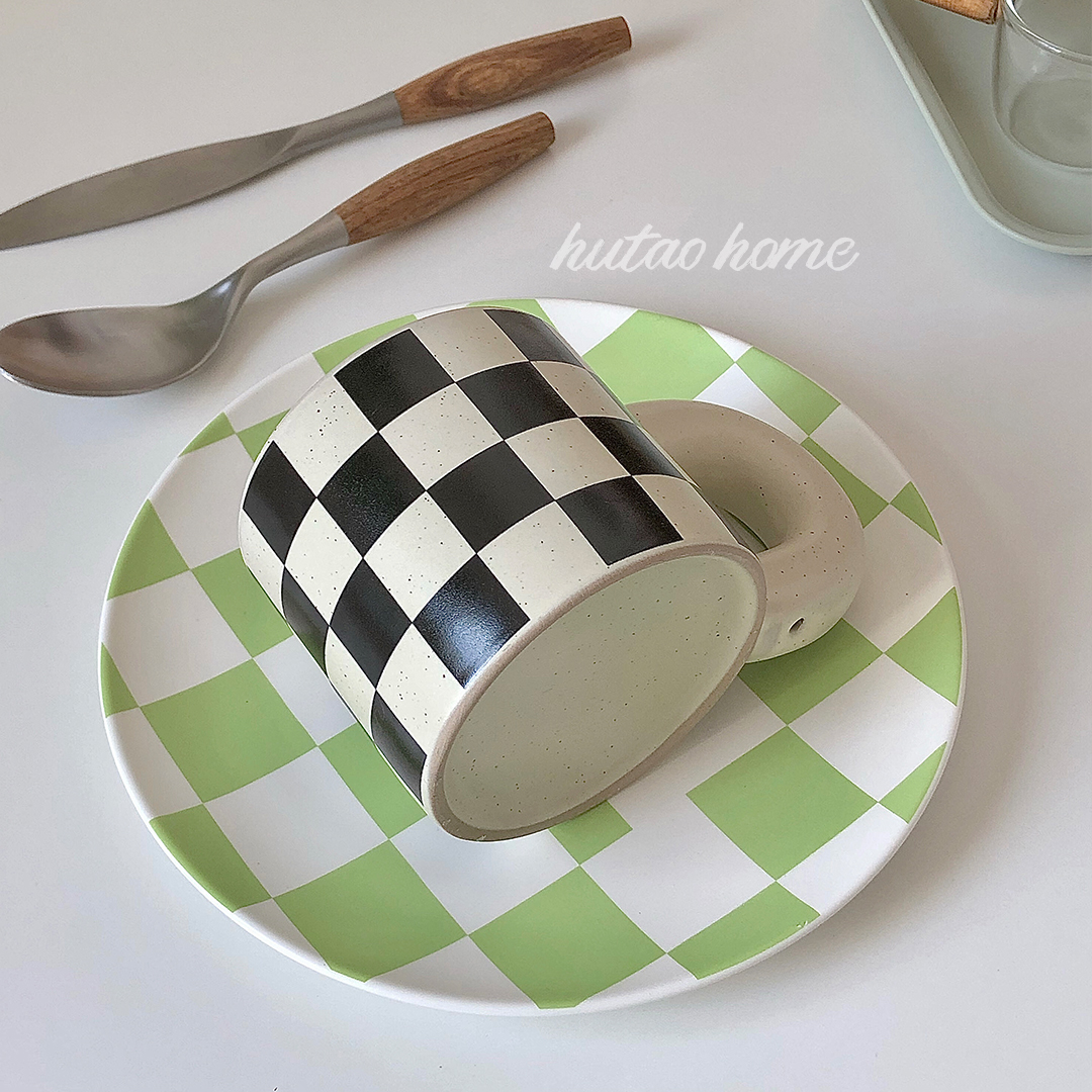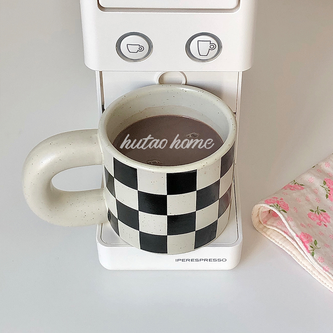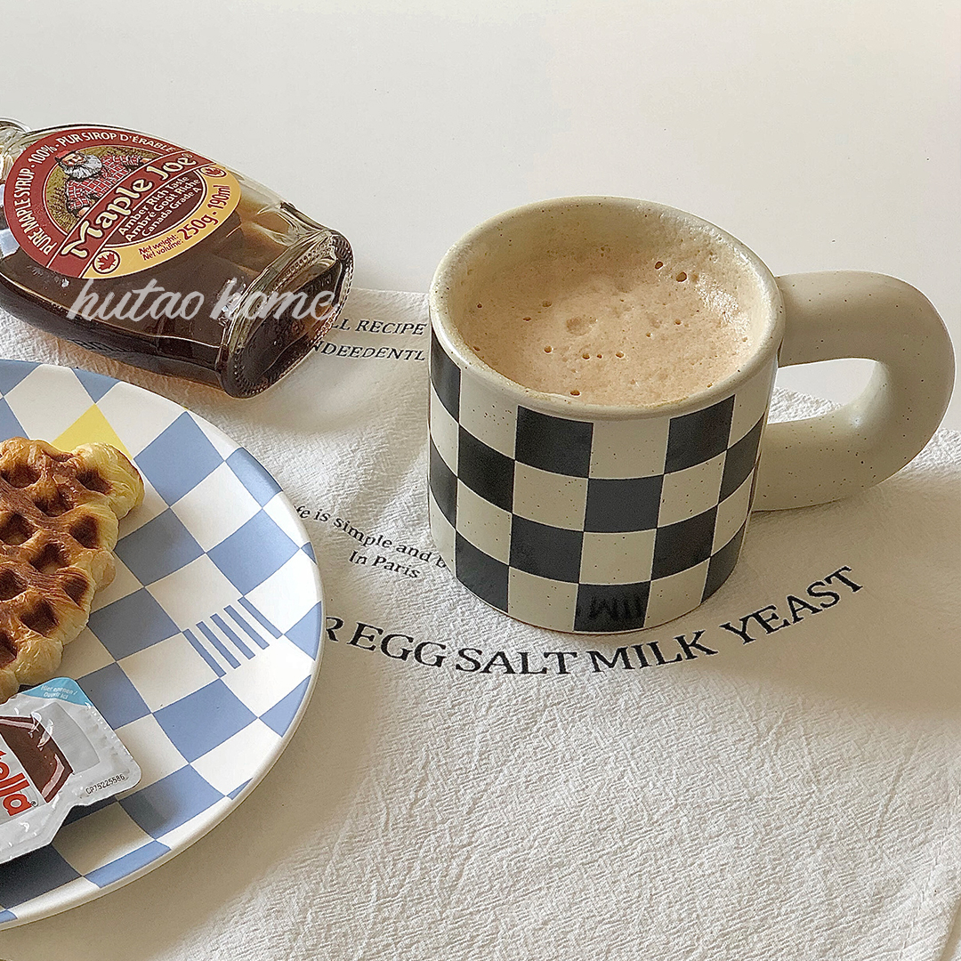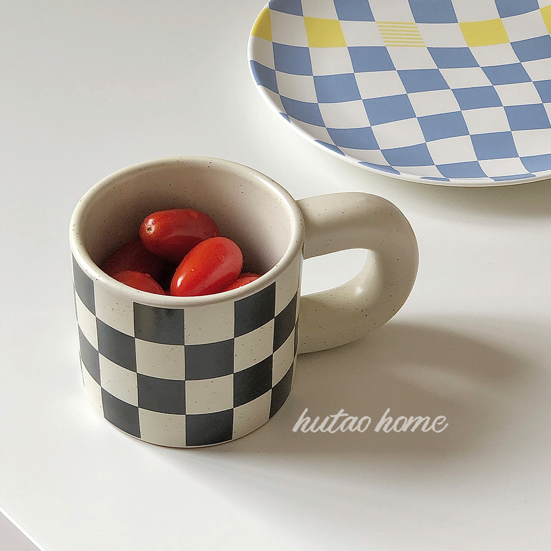 ins wind checkerboard g retro american fatfat handle mark cup coffee cup cow milk cup matt gust glass