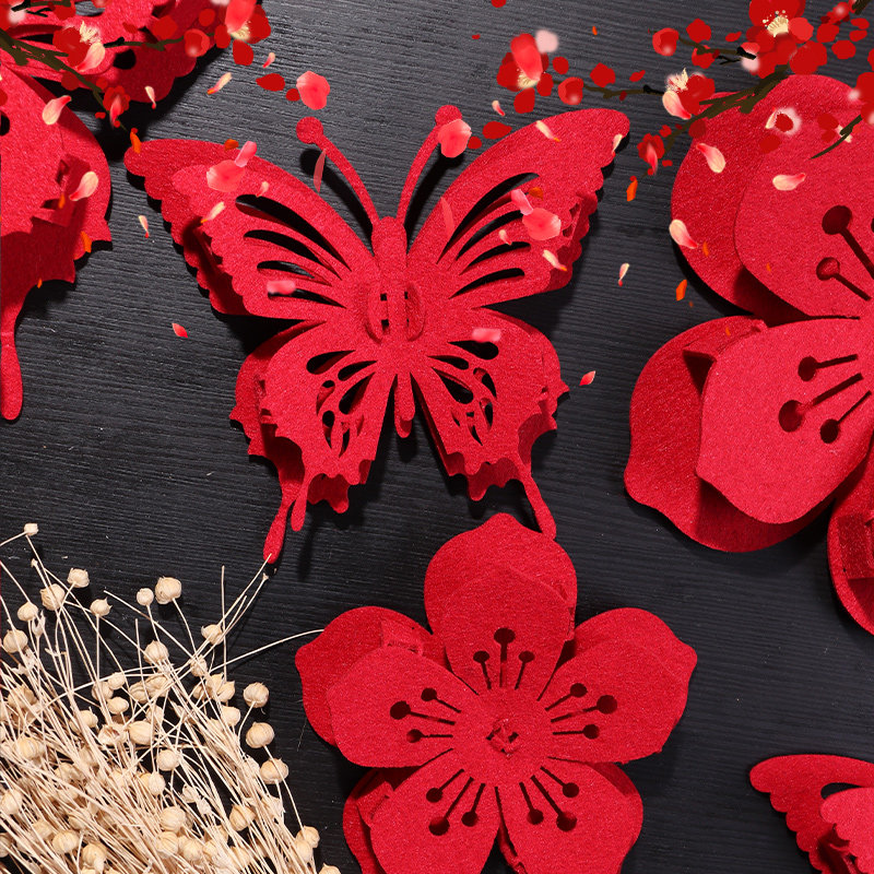 Newlywed non-woven butterfly peach blossom three-dimensional wall stickers wedding room background wall decorations woman bedroom wedding arrangement