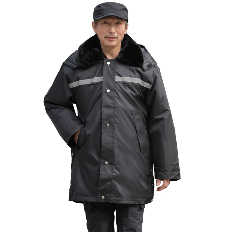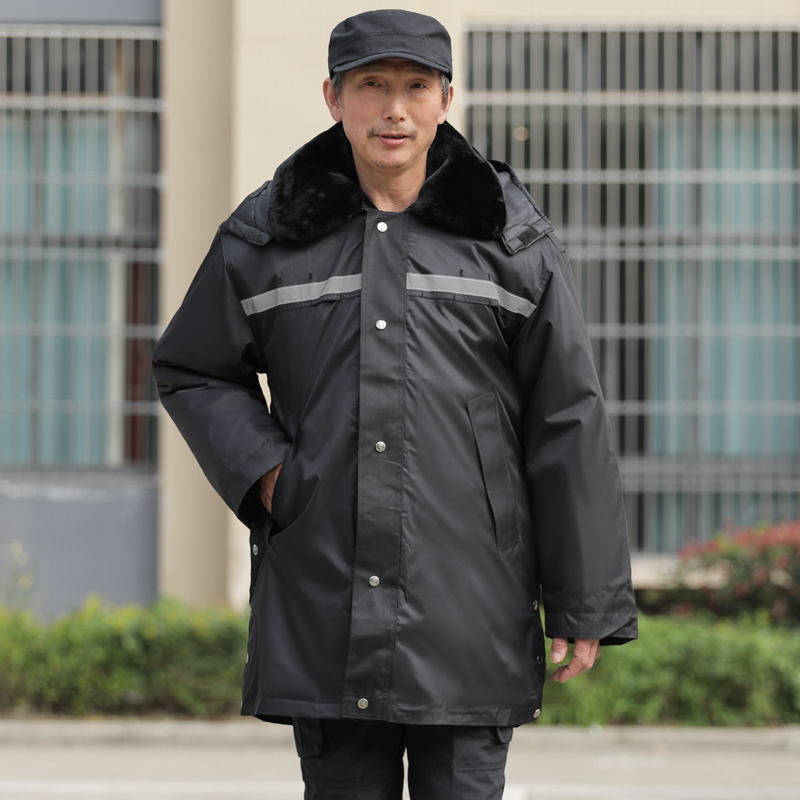 Autumn and winter thick trench coat men plus velvet medium long version cold warm cotton coat loose large size Security jacket
